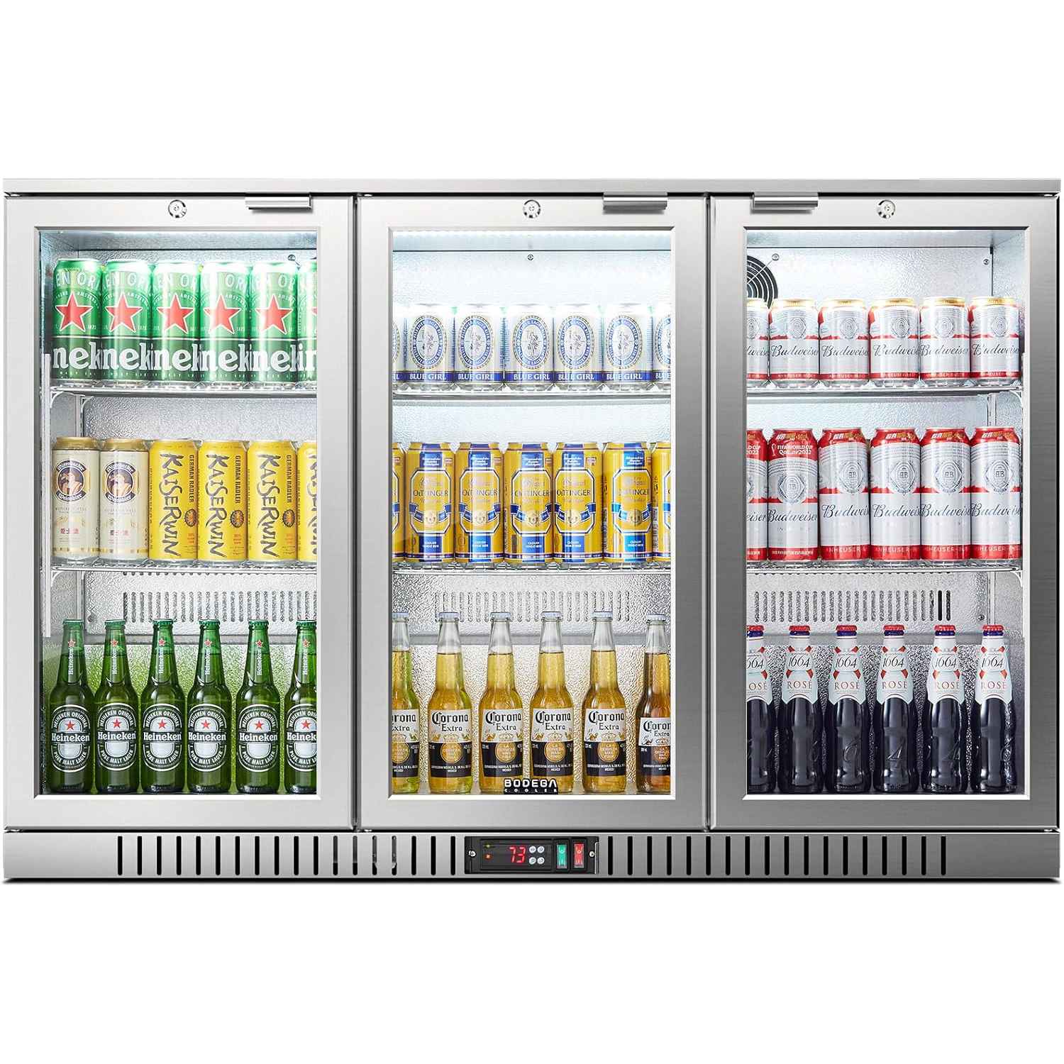This commercial fridge has easy-to-read LED controls and six adjustable shelves holding up to 328 cans or 100 bottles. The top door knob makes it easy to open, with single locks for added security. 🔒