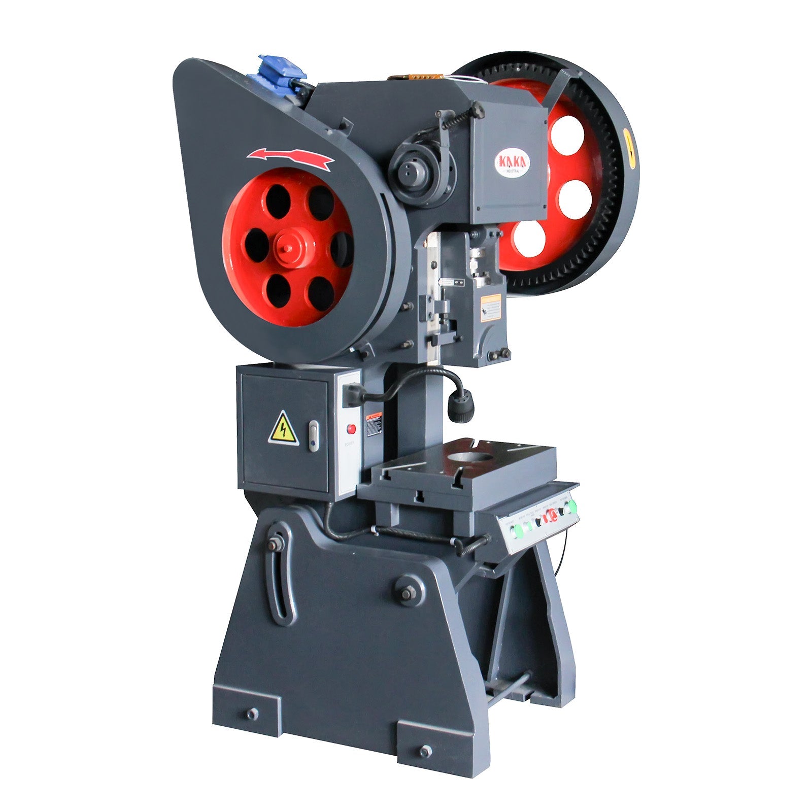 The KAKA Industrial JB23-25 Mechanical Power Press (162012V220) is a 25-ton manual sheet metal punch press designed for precision punching and forming tasks.
