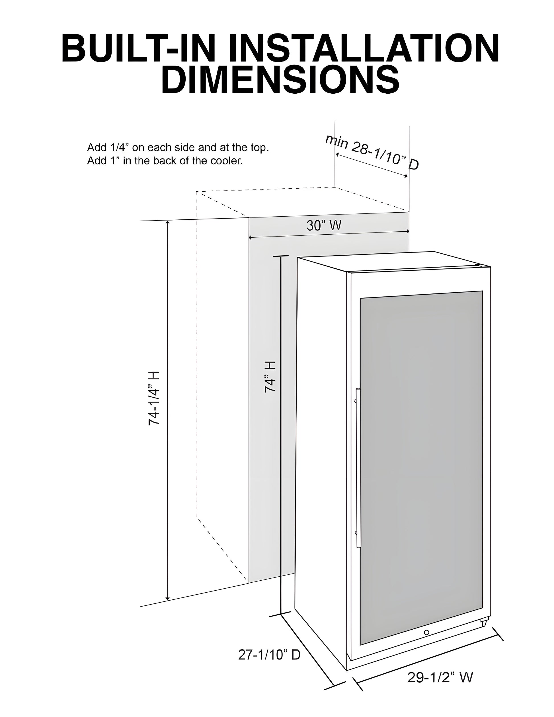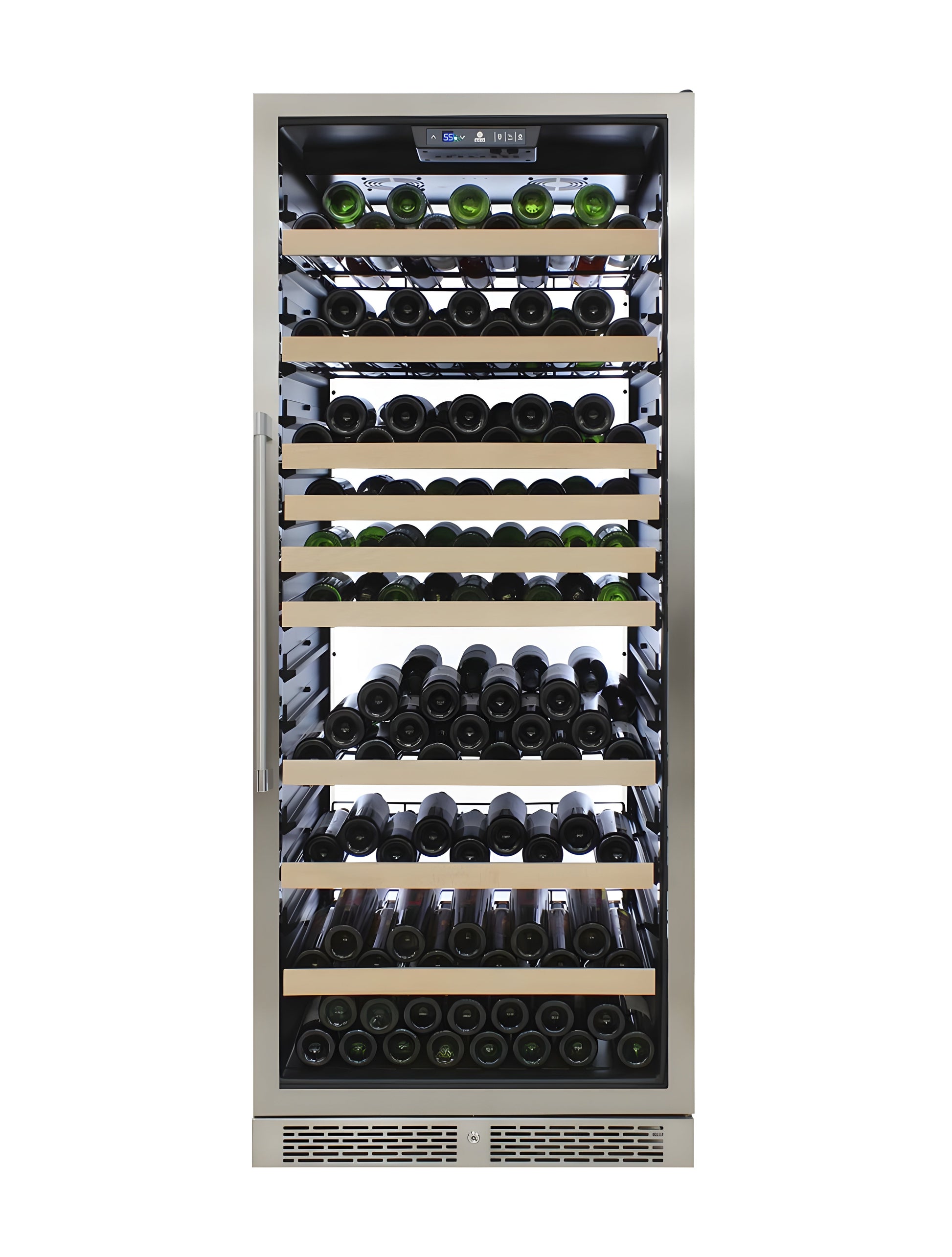 Store and display your collection in luxury with Vinotemp's 173-Bottle Wine Cooler. This Vinotemp wine refrigerator is front venting with easy installation to build in and fit perfectly in any kitchen or bar area. The stylish wine cooler is an entertainer's delight with its patented white interior Backlit panel that illuminates your collection. Adjustable temperature range allows users to select a proper, customized storage and serving temperature for both light or darker wines. A digital LED temperature display makes temperatures easy-to-read and ensures wine is being stored and served at the appropriate temperature. If it's a Backlit, it's a Vinotemp.