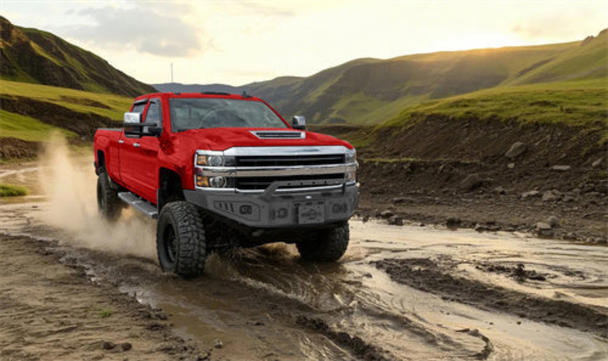 Heavy-duty front bumper made for 2015–2019 Chevy Silverado 2500HD/3500HD models.