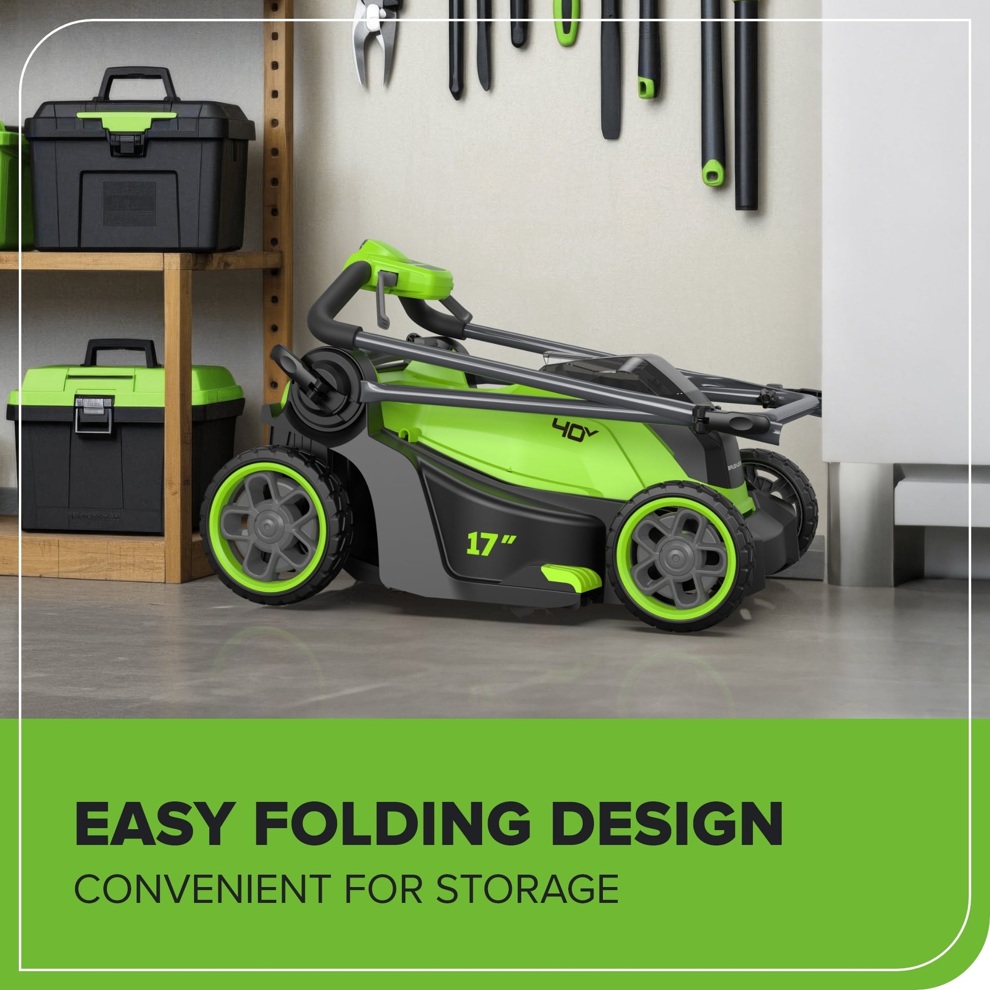 Compact & Efficient: The 17" brushless mower is perfect for small to mid-sized lawns, offering strong cutting performance in a lightweight design.