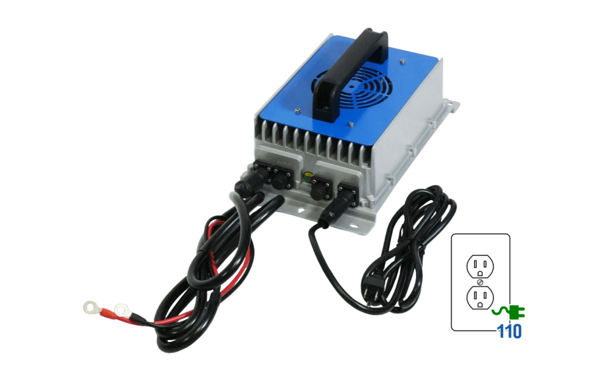 Make sure you stay powered through long work days and long winters with this heavy-duty 48V charger from BigBattery.* This charger’s compact, portable form factor, and IP65 weatherproof protection rating will ensure you always have power when and where you need it. Plus, it is equipped with an easy M8 Ring Terminal connection for your battery, a 110VAC/220V cable for plugging directly into any standard wall outlet, and an output current of 20A. Now you can plug in, charge up, and get back to business in no time!