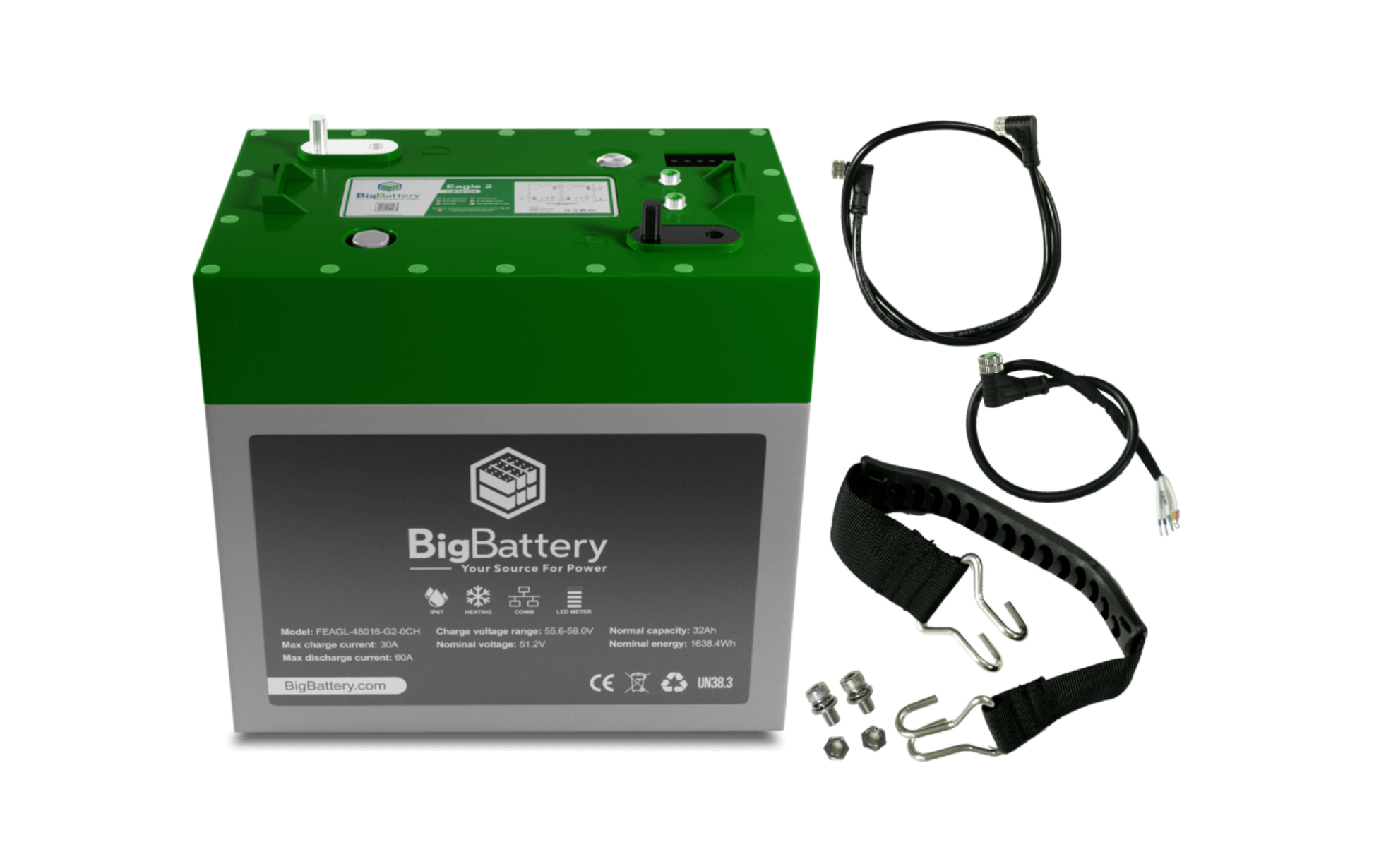 2ND GENERATION POWER TAKES FLIGHT! Introducing BigBattery’s all-new 48V 4.89 kWh LiFePO4 3x EAGLE 2 Kit. The EAGLE 2 embodies the reliability and durability you’ve come to expect from BigBattery solutions, packing Tier 1 LFP cells in a compact, GC2 form factor. This energy-dense design allows for effortless installations in your golf cart, utility vehicle, 48V UTV, or 48V LSV. Plus, the EAGLE 2 serves as a mirror-image replacement for any stock T-105 lead-acid battery, allowing you to greatly reduce the total weight of your cart without battery tray modifications, while seeing significant boosts in lifespan, range, and acceleration.