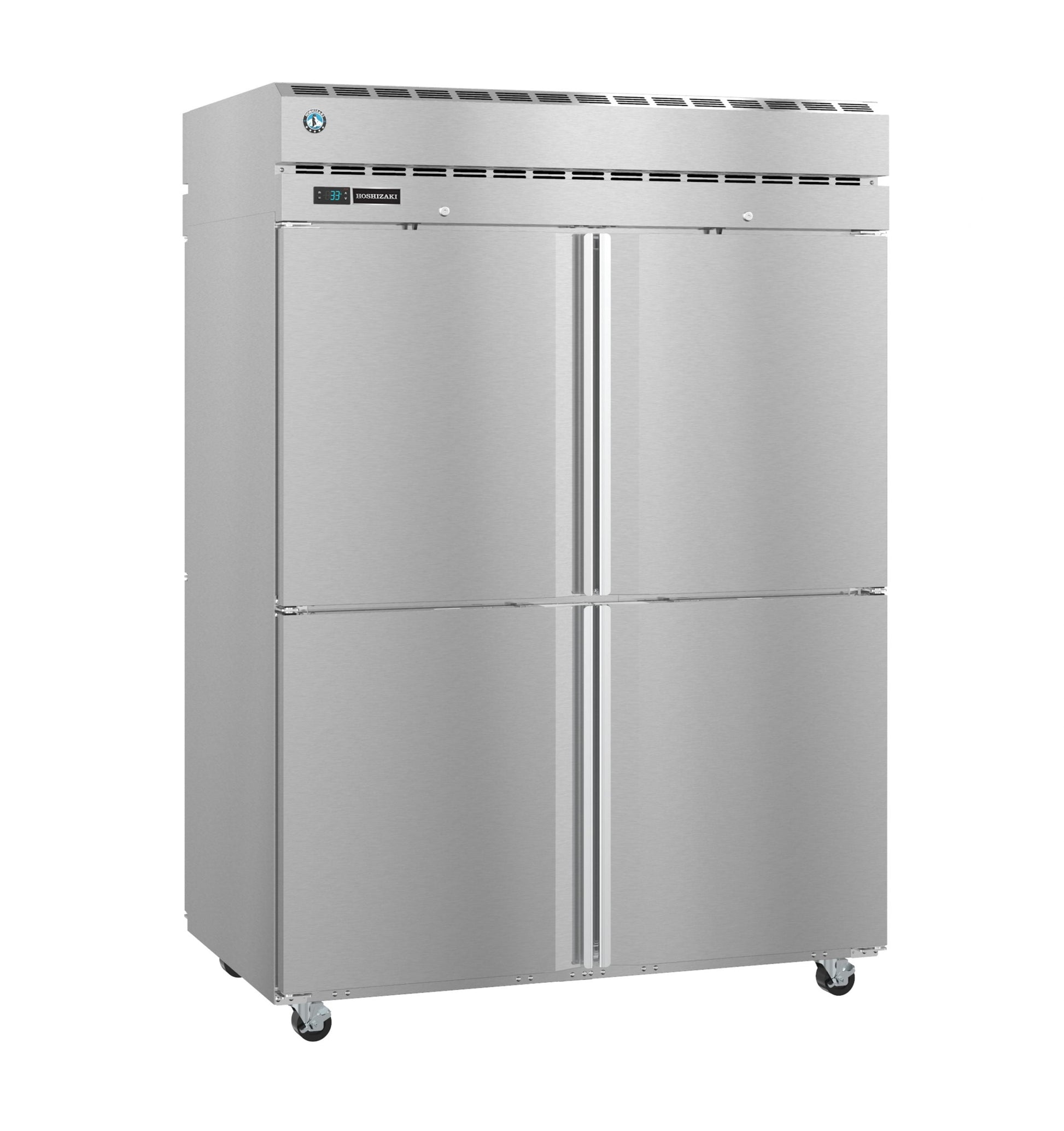 Dual-Sided Access: Designed for high-traffic kitchens, this 2-section pass-thru refrigerator features 8 half stainless steel doors (4 per side), facilitating efficient workflow and quick access from both sides.