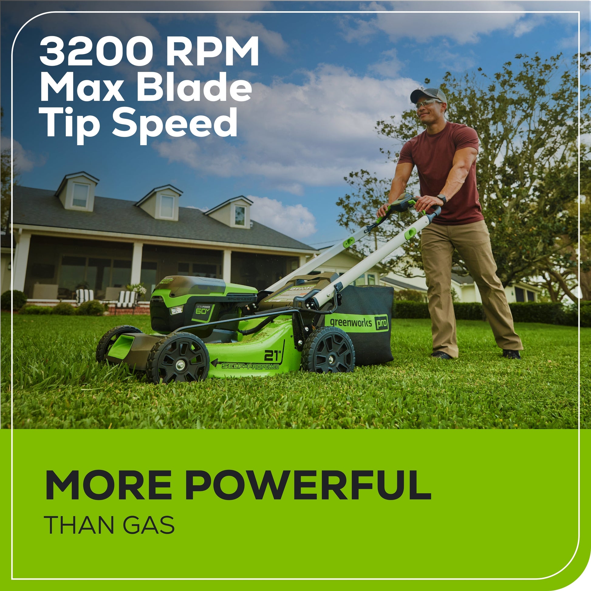 The Greenworks RENEWED 60V 21" Self-Propelled Lawn Mower offers powerful, gas-like performance with effortless operation and zero emissions.