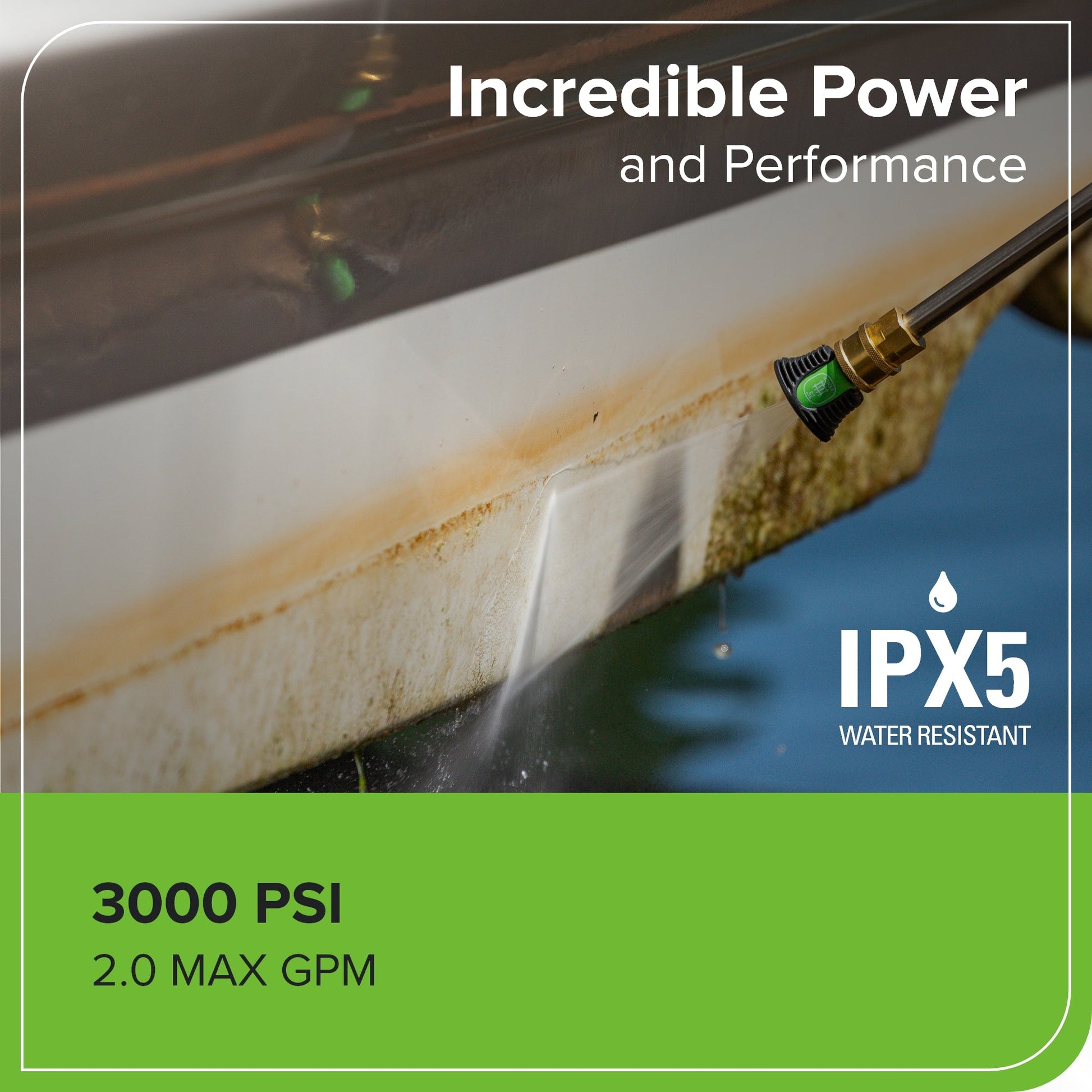 Powerful Cleaning: 3000 PSI at 2.0 GPM efficiently removes dirt, grime, and tough stains.