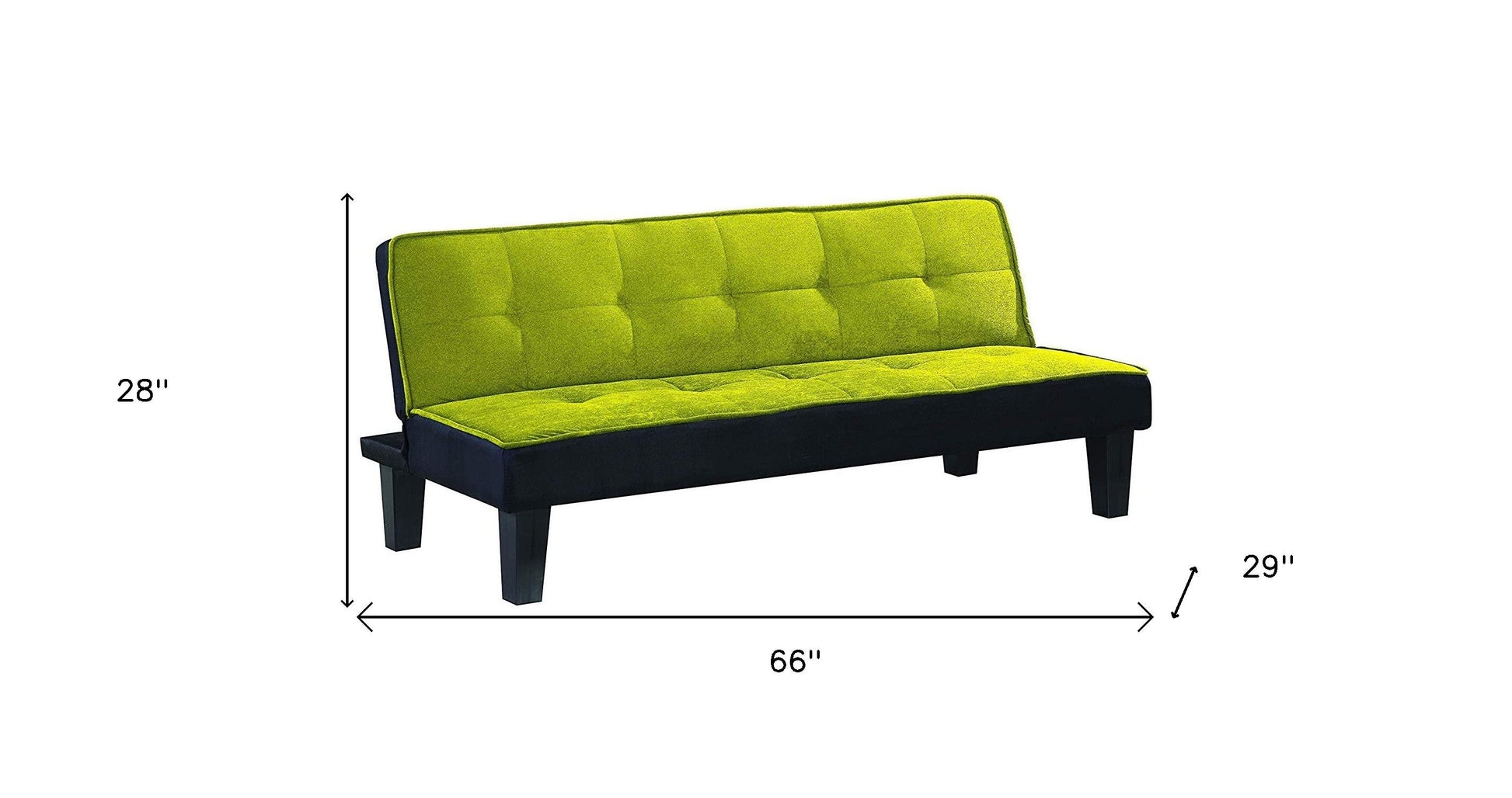 Transform your home's interior with this luxurious 66-inch green fabric sofa with black legs. A great showpiece for your room, this sofa is a must have. Crafted with an armless design, its solid green upholstery adds a touch of elegance. The sleek black legs provide a modern contrast, elevating the overall look. Perfect for lounging or entertaining, this green sofa complements various decor styles effortlessly. Enjoy the comfort and style that this green fabric sofa brings to your living space. 28-inch H x 66-inch W x 29-inch D