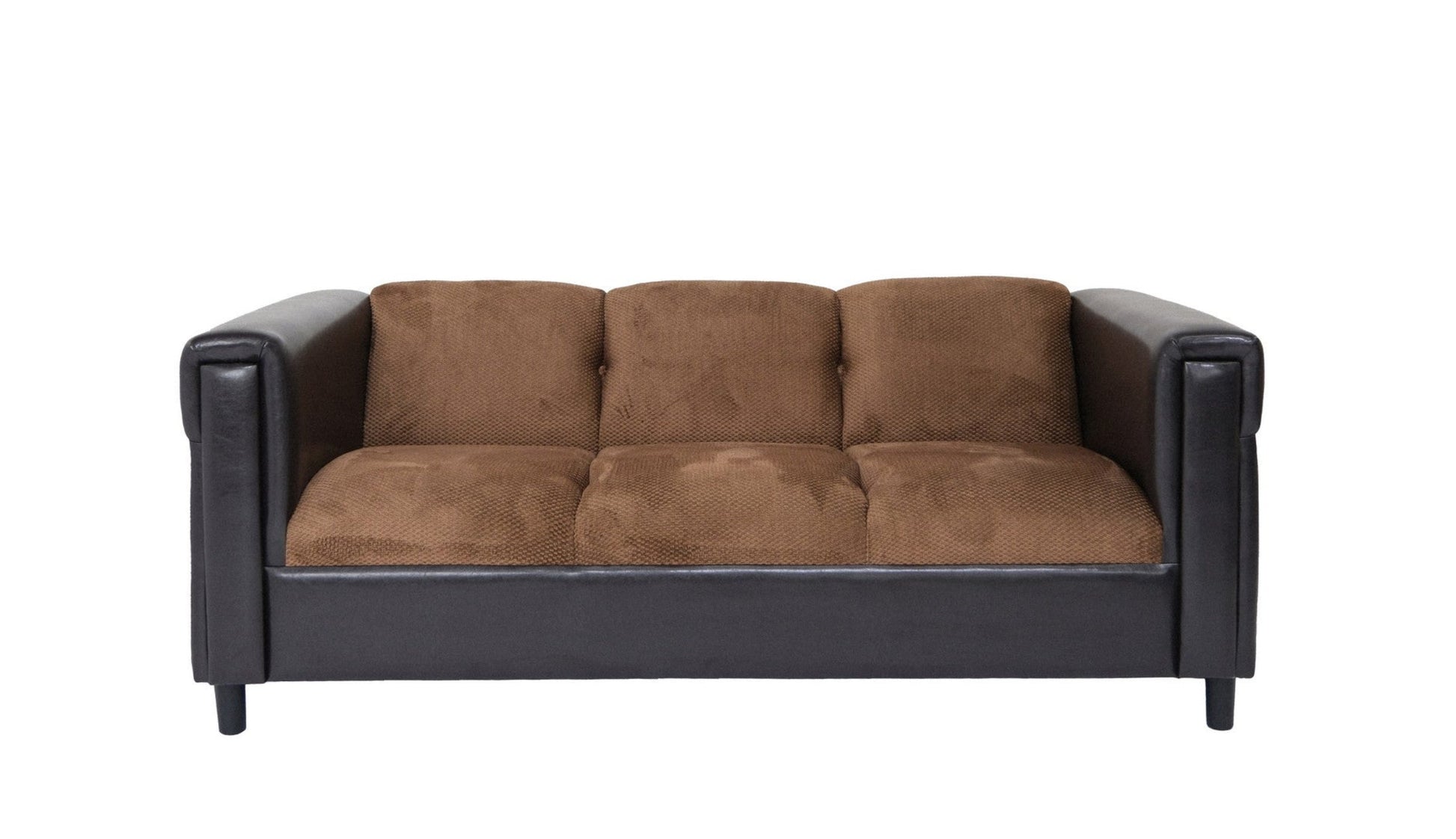 Add an air of fashion to your space with this fabulous 72-inch brown chenille sofa with black legs. With a warm and rich look to it, this solid color standard is upholstered in chenille that is designed to be super soft to the touch, sturdy and resilient. Solid colors give you lots of decorative options and are easy to work into your decor scheme. Sinuous springs construction gives this piece strong support and makes it comfortable to sit even for long periods of time. Square arms offer a comfy place to rest. Black solid wood legs effortlessly elevate the room and add a touch of contemporary design. A great showpiece for your room, this sofa is a must have. 25-inch H x 72-inch W x 34-inch D