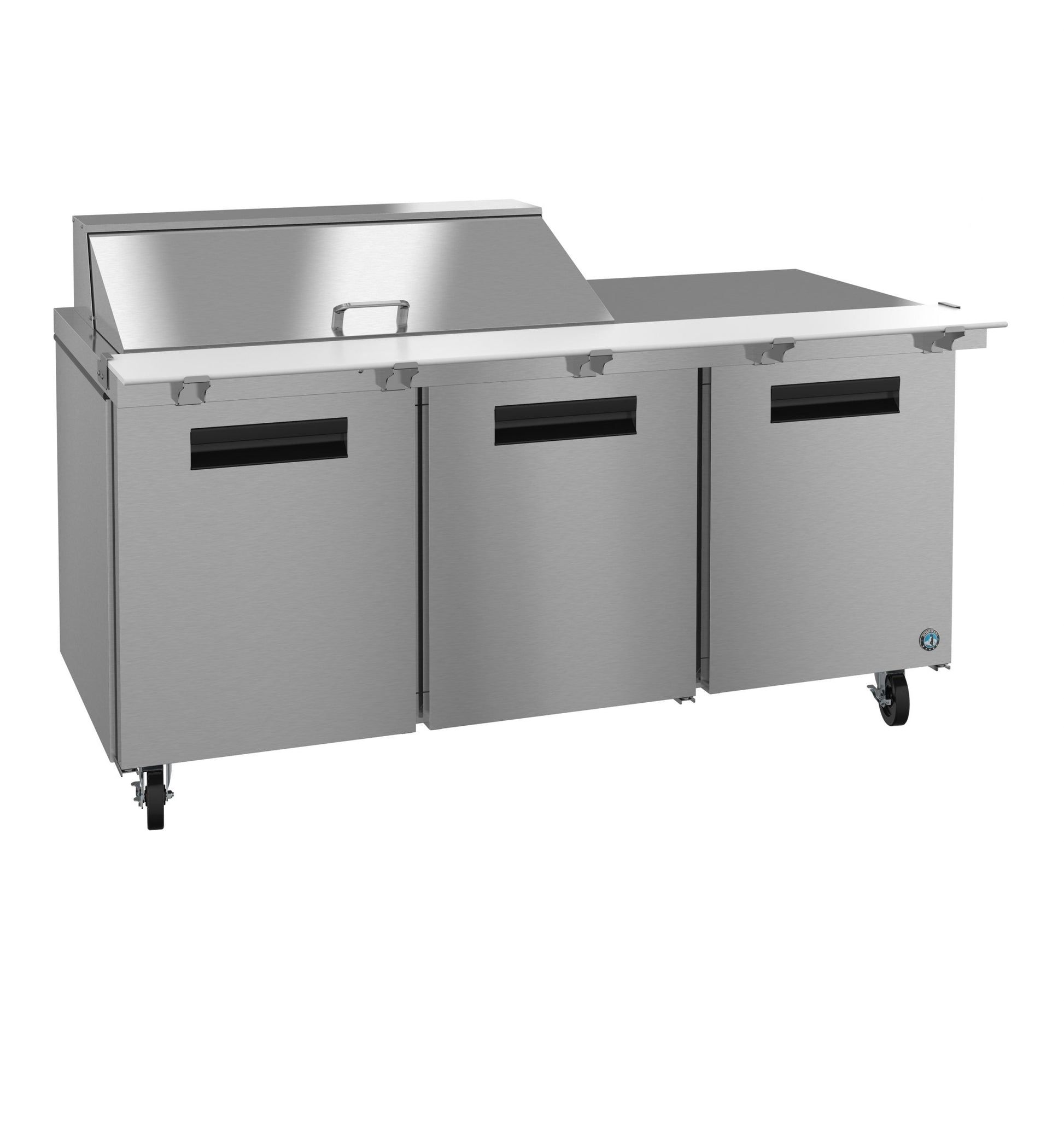 Large Mega Top Capacity: 72" wide prep table with 18-pan storage for superior ingredient organization.