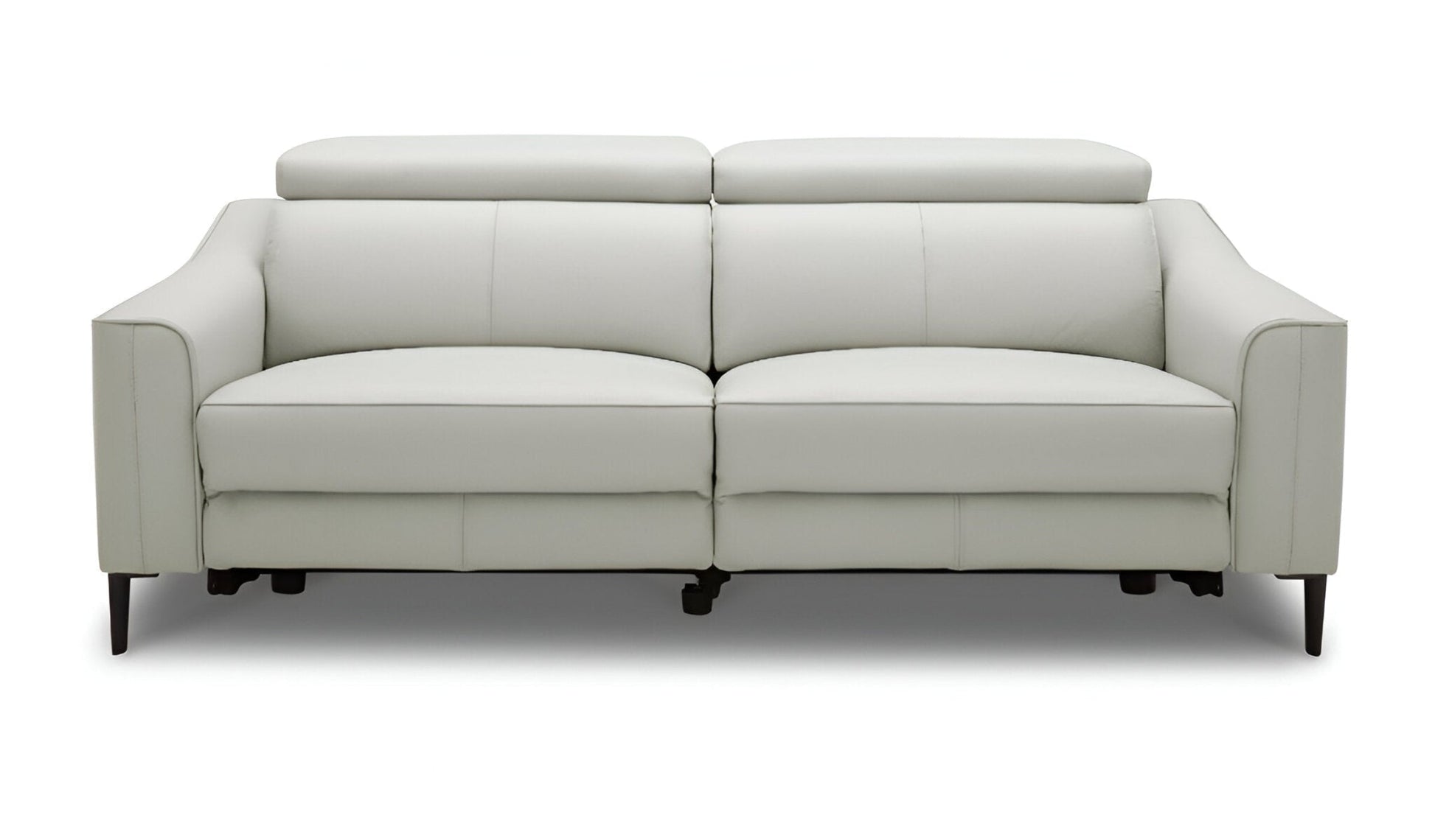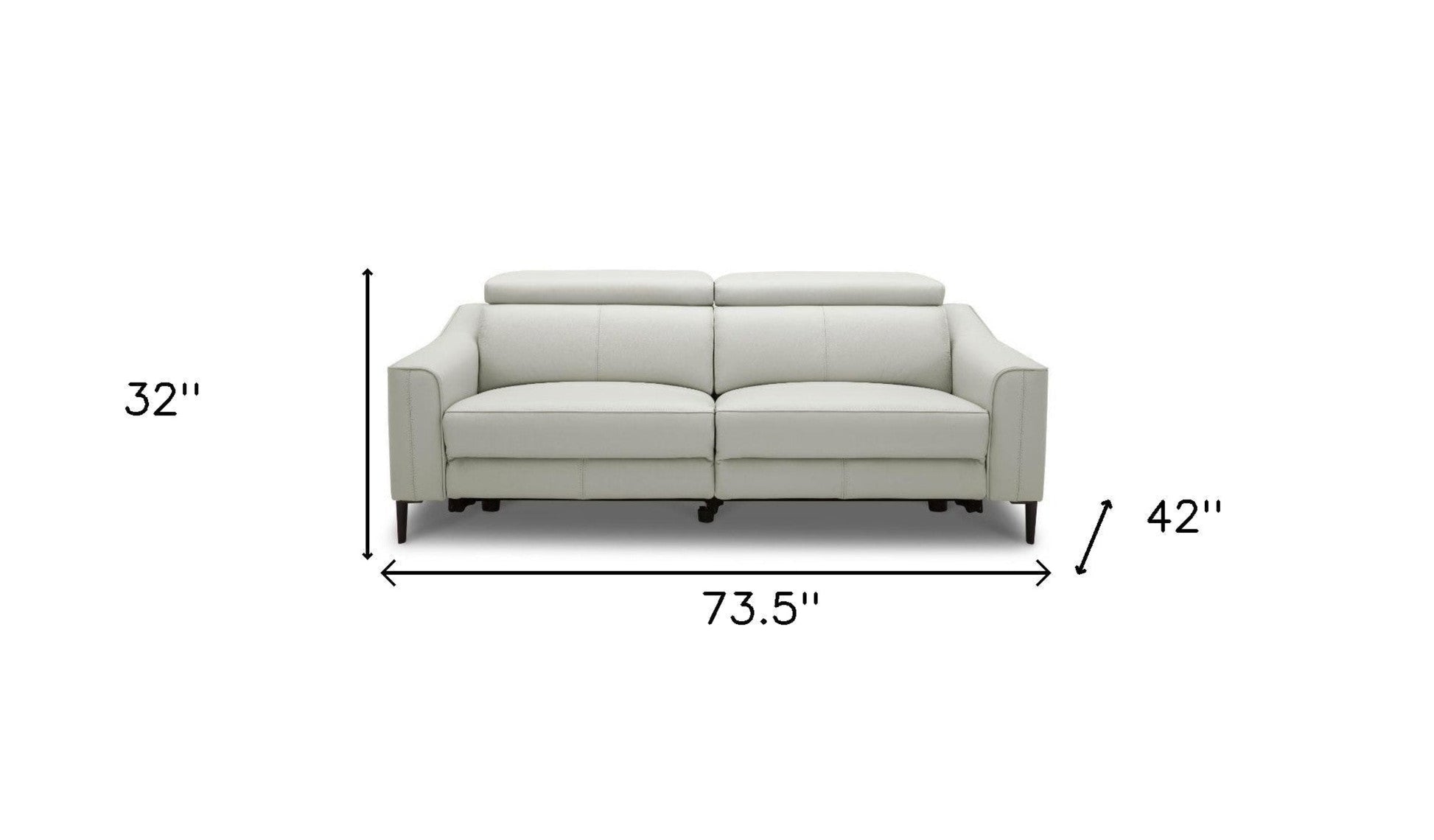An interior designer's dream, this buttery soft high grade leather 74-inch gray leather reclining sofa with black legs will bring just the right touch to your space. The premium leather used makes your lounging luxuriously comfortable and adds an elegant appeal to your space. Solid colors give you lots of decorative options and are easy to work into your decor scheme. Flared arms offer a comfy place to rest. Black metal legs effortlessly elevate the room and add a touch of contemporary design. Built to last, this sofa will be a great centerpiece for your room. 32-inch H x 73.5-inch W x 42-inch D