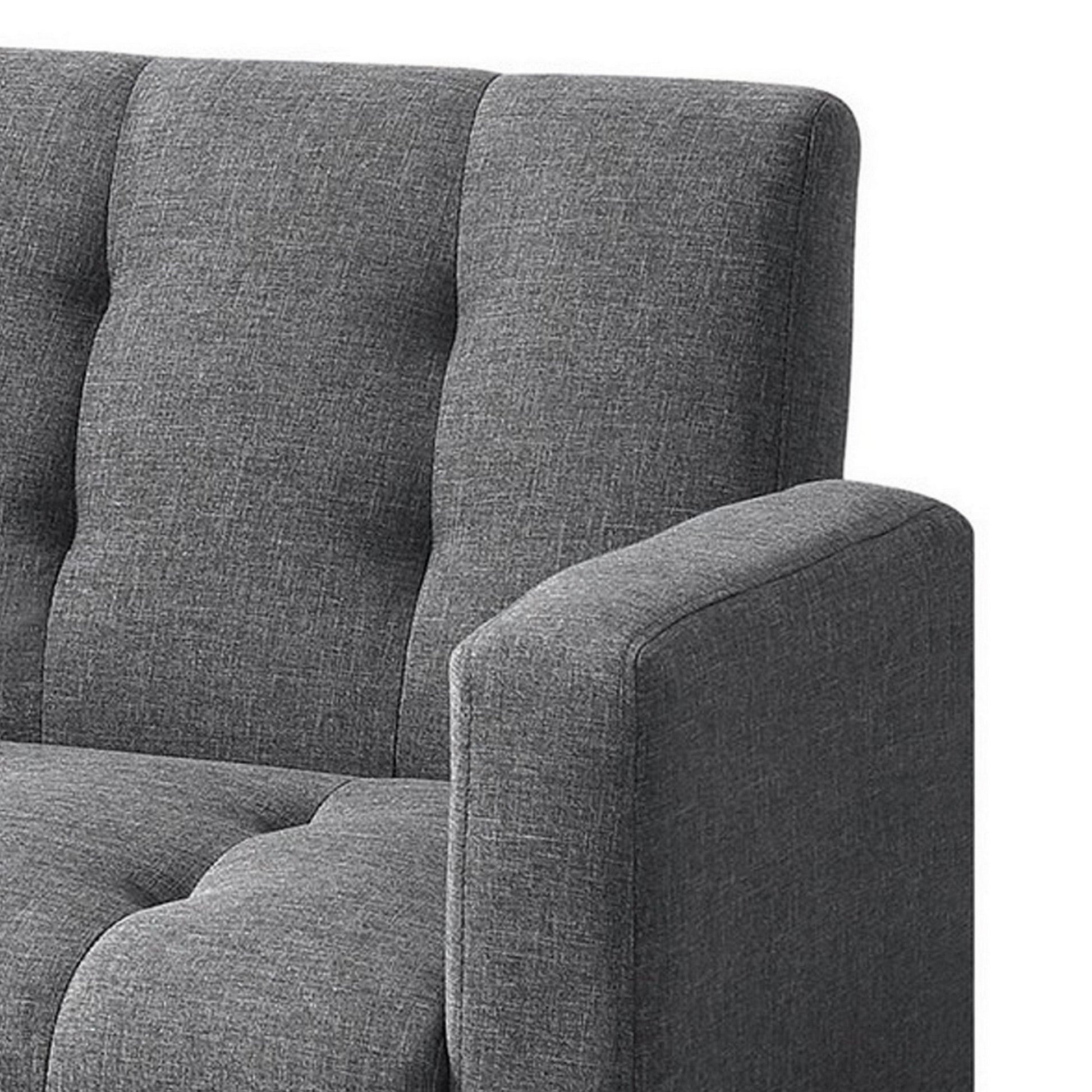 Lay back and relax in deep, all-encompassing comfort with this gorgeous and versatile sofa bed. Upholstered in a warm gray linen like fabric, it comes fitted with a tufted design to ensure longevity of the fabric while the back of the sofa is both perfectly plush and adjustable for easy to access sleeper functionality, perfect for overnight guests.