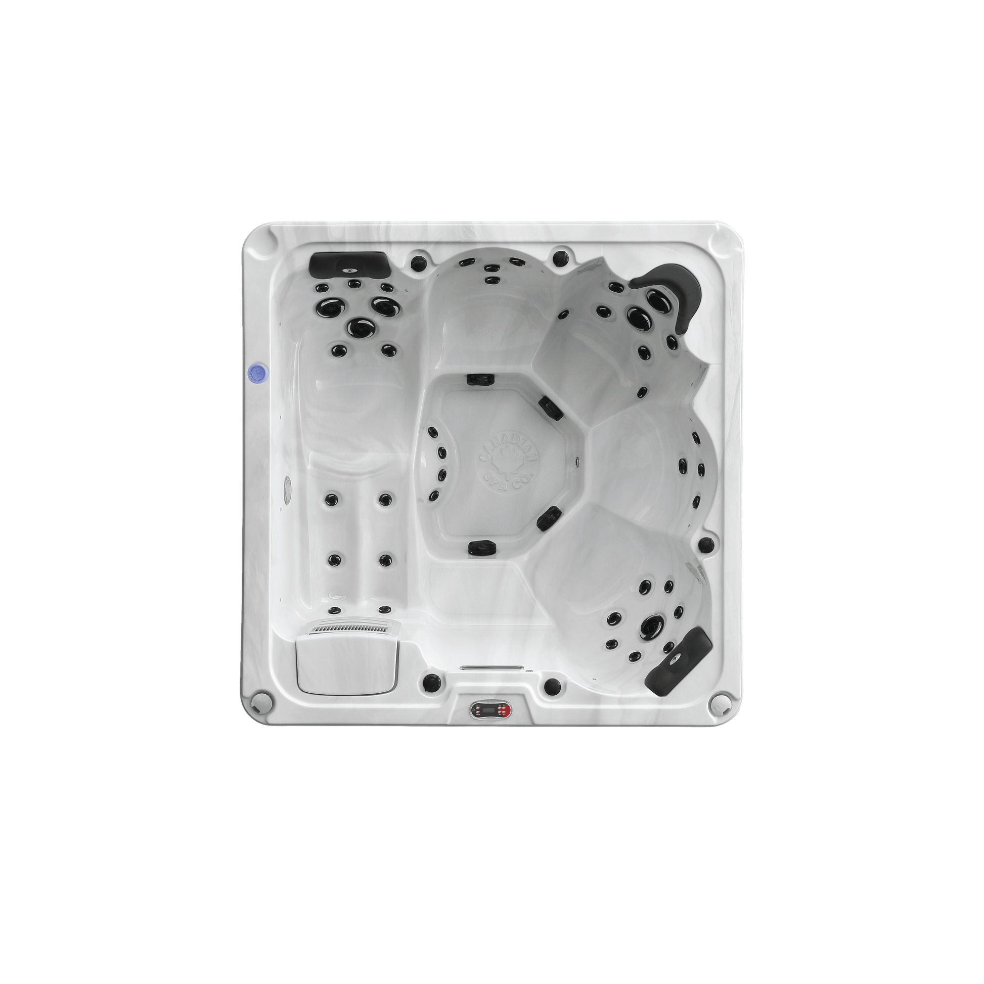 The Burnaby Hot Tub is a great all-purpose spa for any group of 6 looking for it all! It features various seating styles and heights to accommodate everyone, including a full-length lounger and a deep captains chair. The Burnaby is packed with 44 adjustable and interchangeable hydrotherapy jets. So, whether you are looking for a deep tissue massage or to relax with guests, the Burnaby will be sure to satisfy. Our spas use Glacier filtration and a built-in ozone generator to keep your water crystal clear without hassle- letting you focus on enjoying your time in the spa, rather than caring for it! The Burnaby offers unbeatable value through its combination of seating capacity, quality, features and design. The spas LED lighting, built-in Bluetooth audio, aromatherapy system, and cascading waterfall, creates a full-sensory experience, making it the perfect compliment to your backyard!