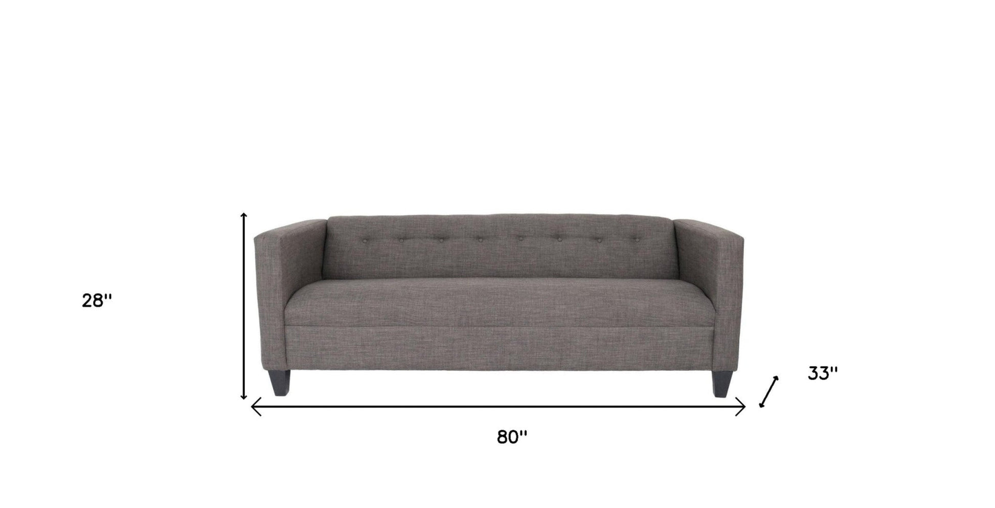 Transform your home's interior with this luxurious 80-inch charcoal polyester sofa with black legs. Solid colors give you lots of decorative options and are easy to work into your decor scheme. Sinuous springs construction gives this piece strong support and makes it comfortable to sit even for long periods of time. Square arms offer a comfy place to rest. Black solid wood legs effortlessly elevate the room and add a touch of contemporary design. Built to last, this sofa will be a great centerpiece for your room. 28-inch H x 80-inch W x 34-inch D
