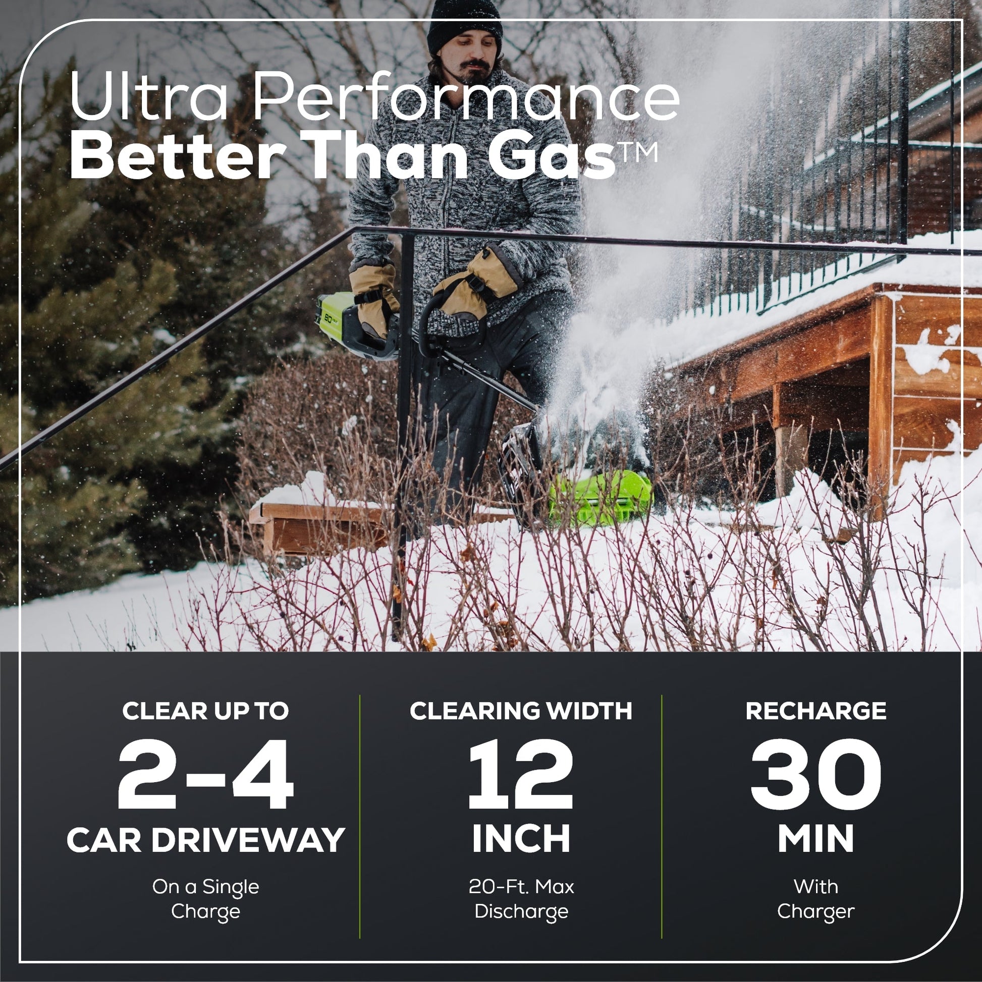 Powerful 80V System: Brushless motor ensures strong performance and fast snow clearing.