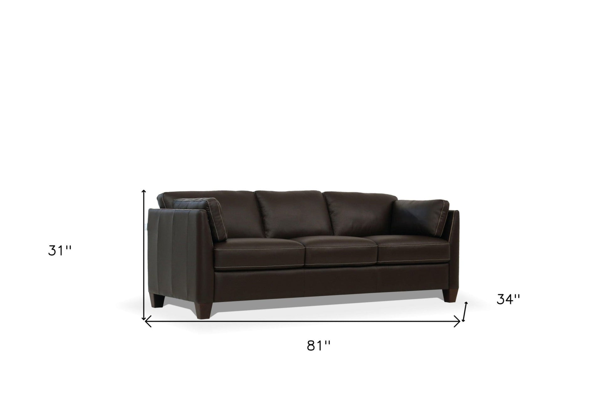 Made of the highest quality, supple leather, this 81-inch chocolate leather sofa with black legs will be the star of your space. The high grade premium leather used makes your lounging luxuriously comfortable and adds an elegant appeal to your space. Solid colors give you lots of decorative options and are easy to work into your decor scheme. Sinuous springs construction gives this piece strong support and makes it comfortable to sit even for long periods of time. Square arms offer a comfy place to rest. Built to last, this sofa will be a great centerpiece for your room. 31-inch H x 81-inch W x 34-inch D