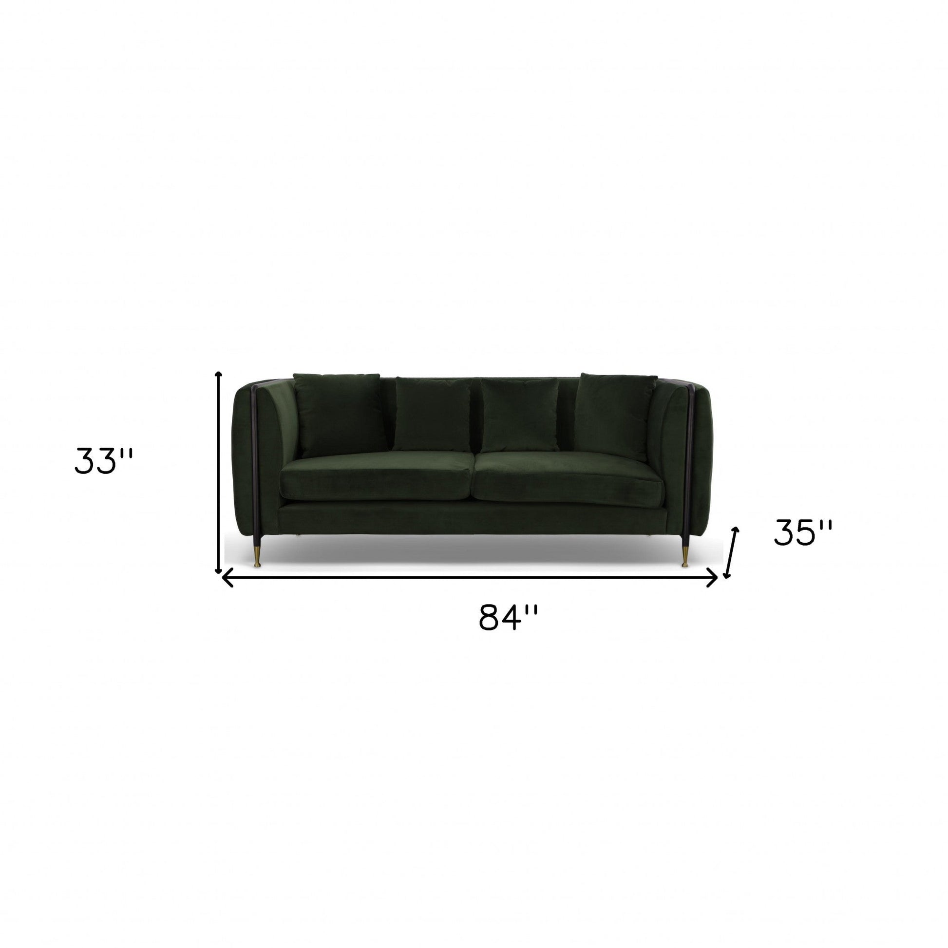 Luxurious Velvet Upholstery: The 84" Dark Green Velvet Sofa offers a rich, plush texture that adds sophistication and elegance to any room, perfect for creating a statement piece in your space.
