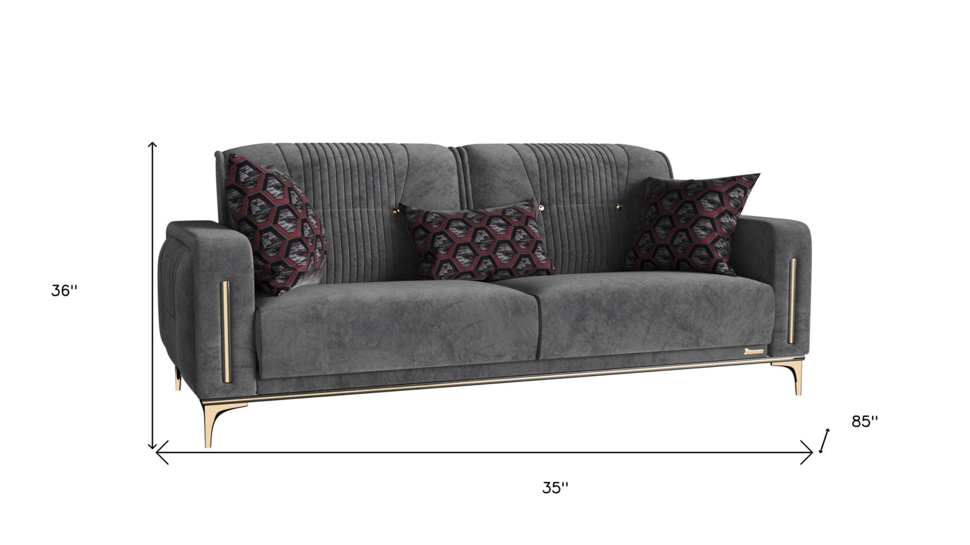 Transform your home's interior with this luxurious 85-inch gray microfiber sleeper sofa and toss pillows. Built to last, this solid color standard is upholstered with microfiber that is designed to be soft, resilient, easy to maintain, and stand the test of time. Solid colors give you lots of decorative options and are easy to work into your decor scheme. Sinuous springs construction gives this piece strong support and makes it comfortable to sit even for long periods of time. Recessed arms offer a comfy place to rest. Gray solid wood legs effortlessly elevate the room and add a touch of contemporary design. Built to last, this sofa will be a great centerpiece for your room. 36-inch H x 85-inch W x 35-inch D