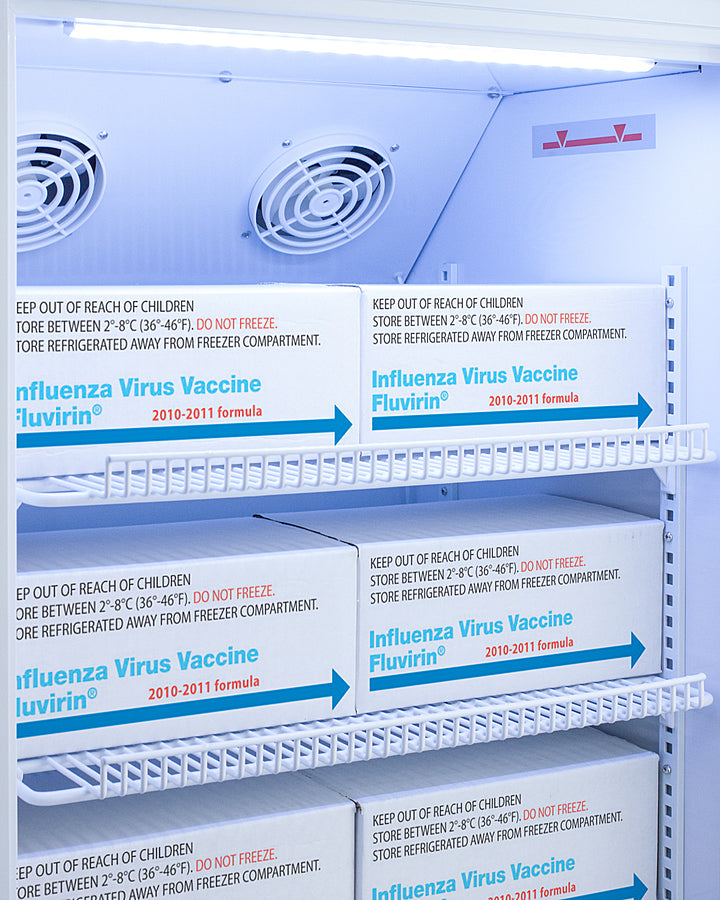 Accucold's Pharma-Vac Performance Series are upright all-refrigerators designed and purpose-built for pharmacy, medication, and vaccine applications to support meeting CDC/VFC guidelines, with a powder-coated silver ion handle that helps prevent germ spread.