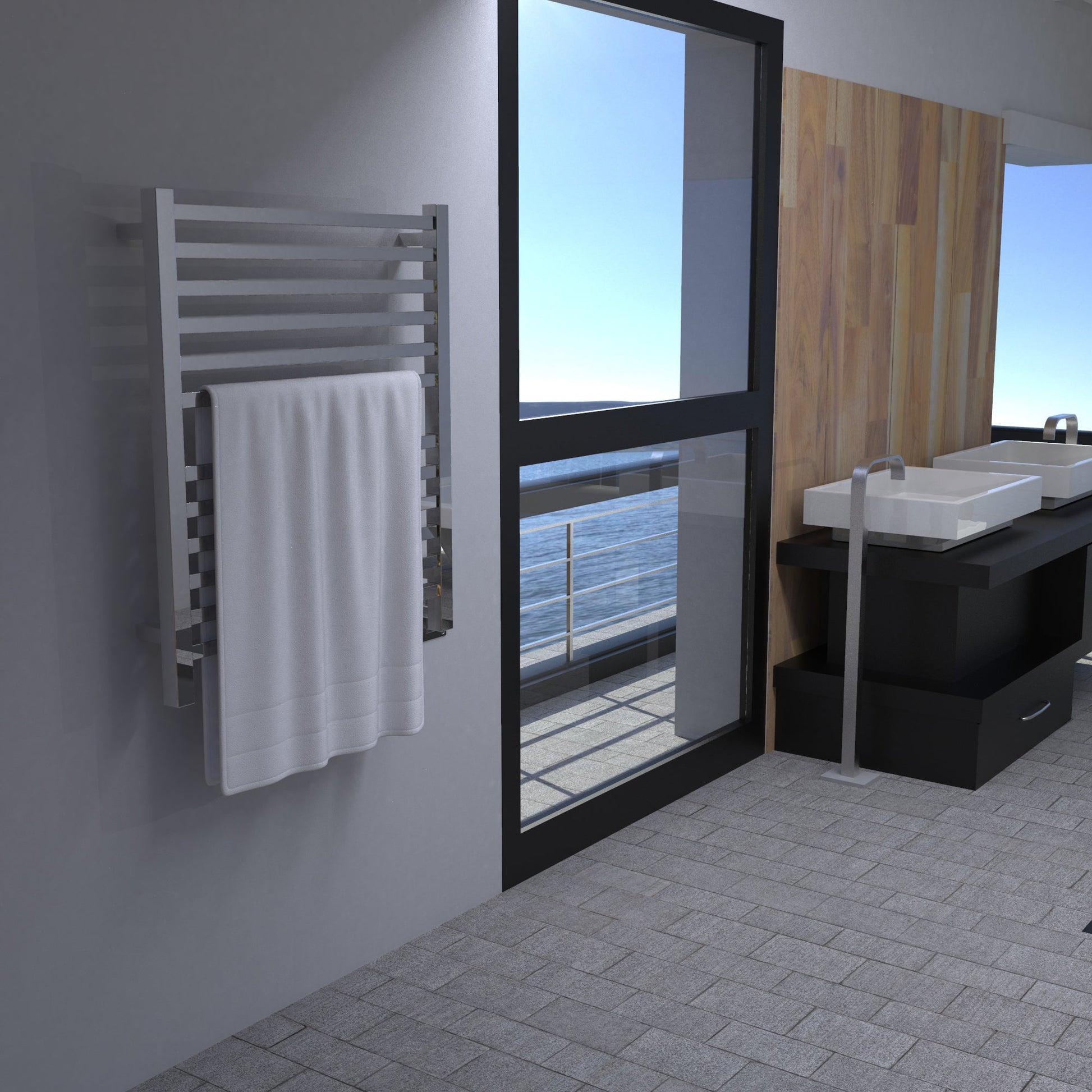 Sleek & Compact Design: The Amba S2933 Heated Towel Rack stands at 33 1/4″, offering a modern and space-efficient solution perfect for smaller bathrooms or tighter spaces.