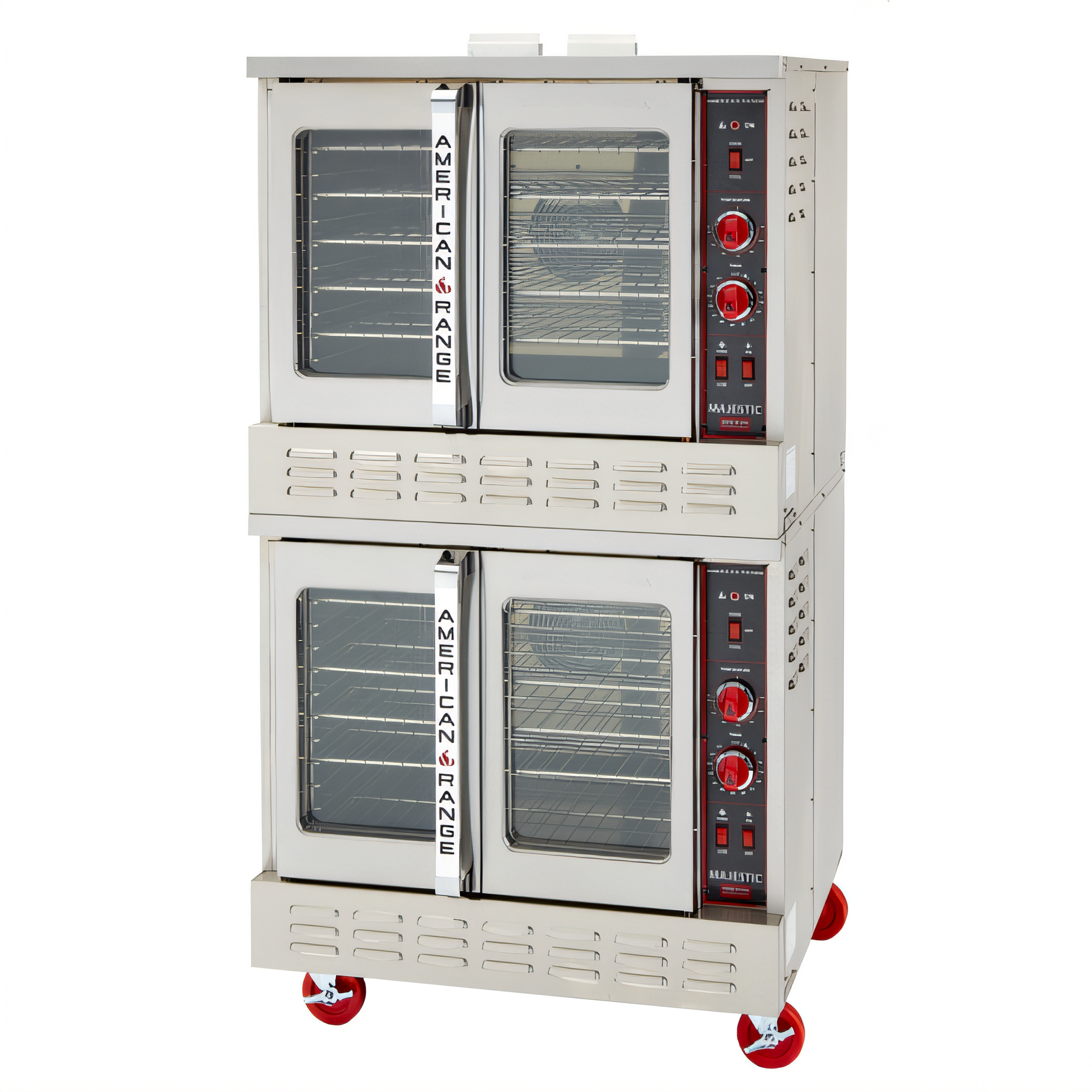 Built for bakeries, restaurants and high-volume kitchens that refuse to compromise, the American Range Majestic MSDE-2-SS delivers uniform, high-capacity baking power in a space-saving stacked design. Two independently controlled ovens give you twice the throughput while heavy-duty components, all-stainless construction and ETL certification ensure years of dependable service.