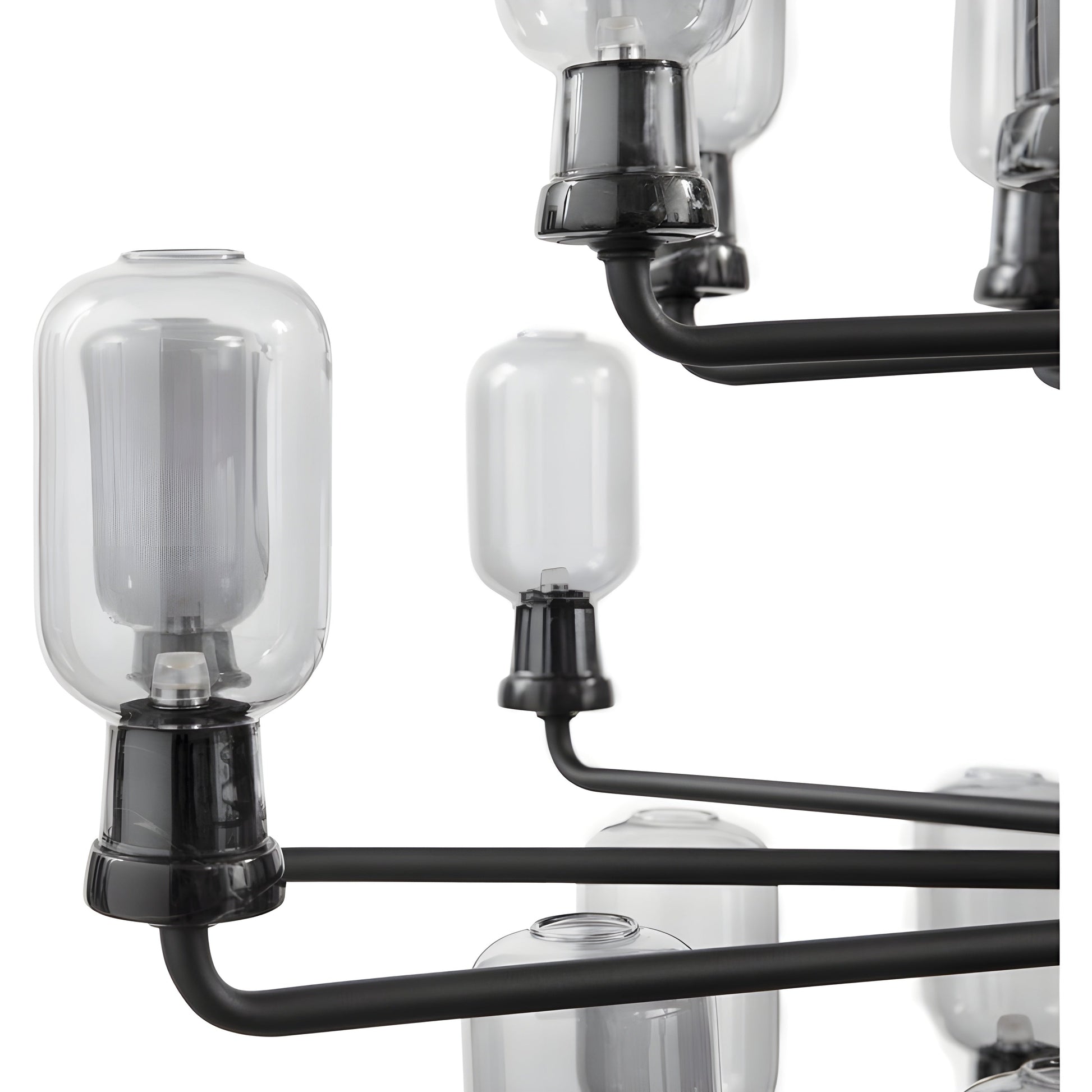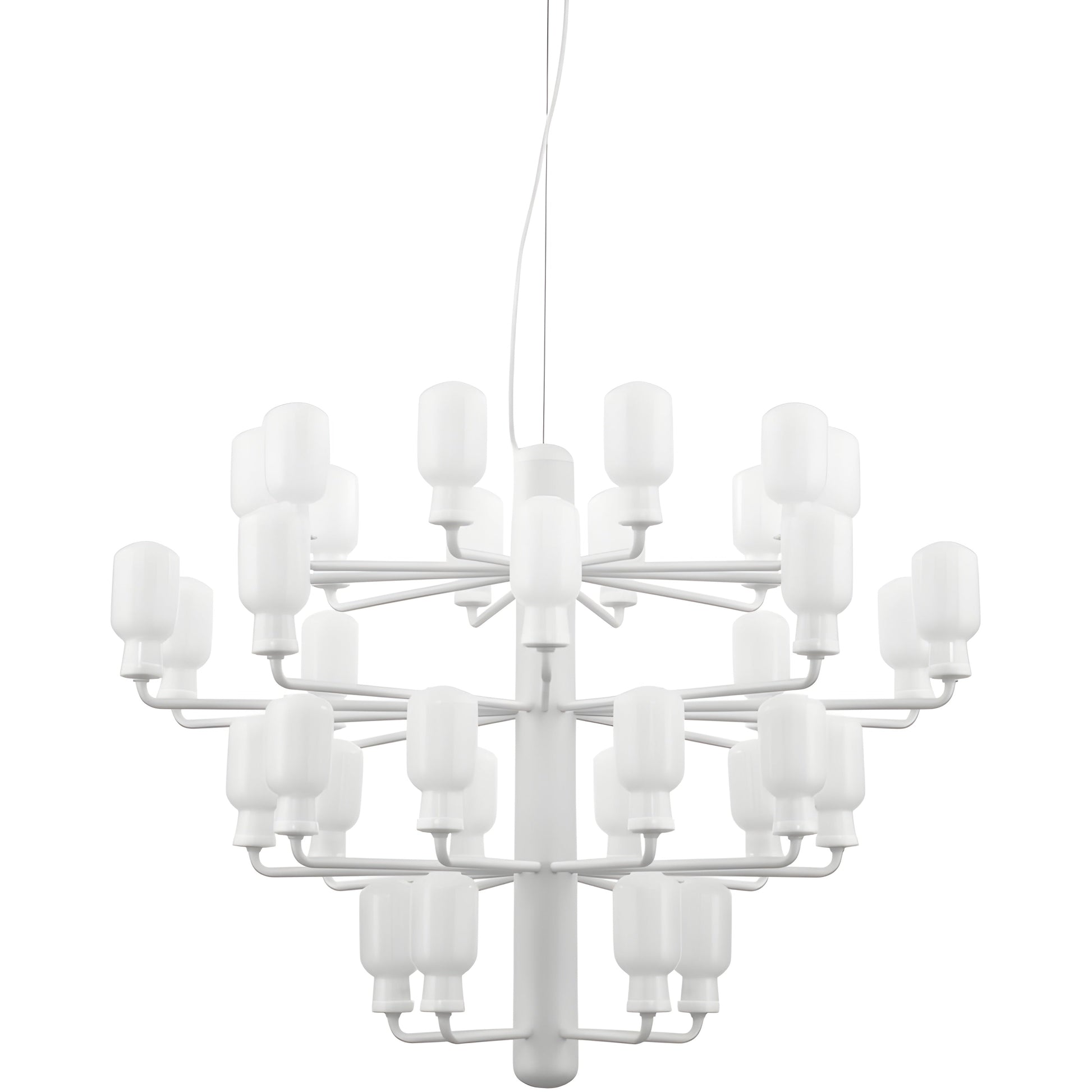 Designed for both beauty and function, the Amp Chandelier measures 62.5 cm in height and 85 cm in diameter. It features 35 G4 LED bulbs that provide soft, even lighting. The lightweight steel frame allows the lights to float effortlessly, creating a warm and inviting glow. Additionally, its soft light diffusion makes it ideal for various spaces, from a living room furniture setup to a dramatic hallway fixture.
