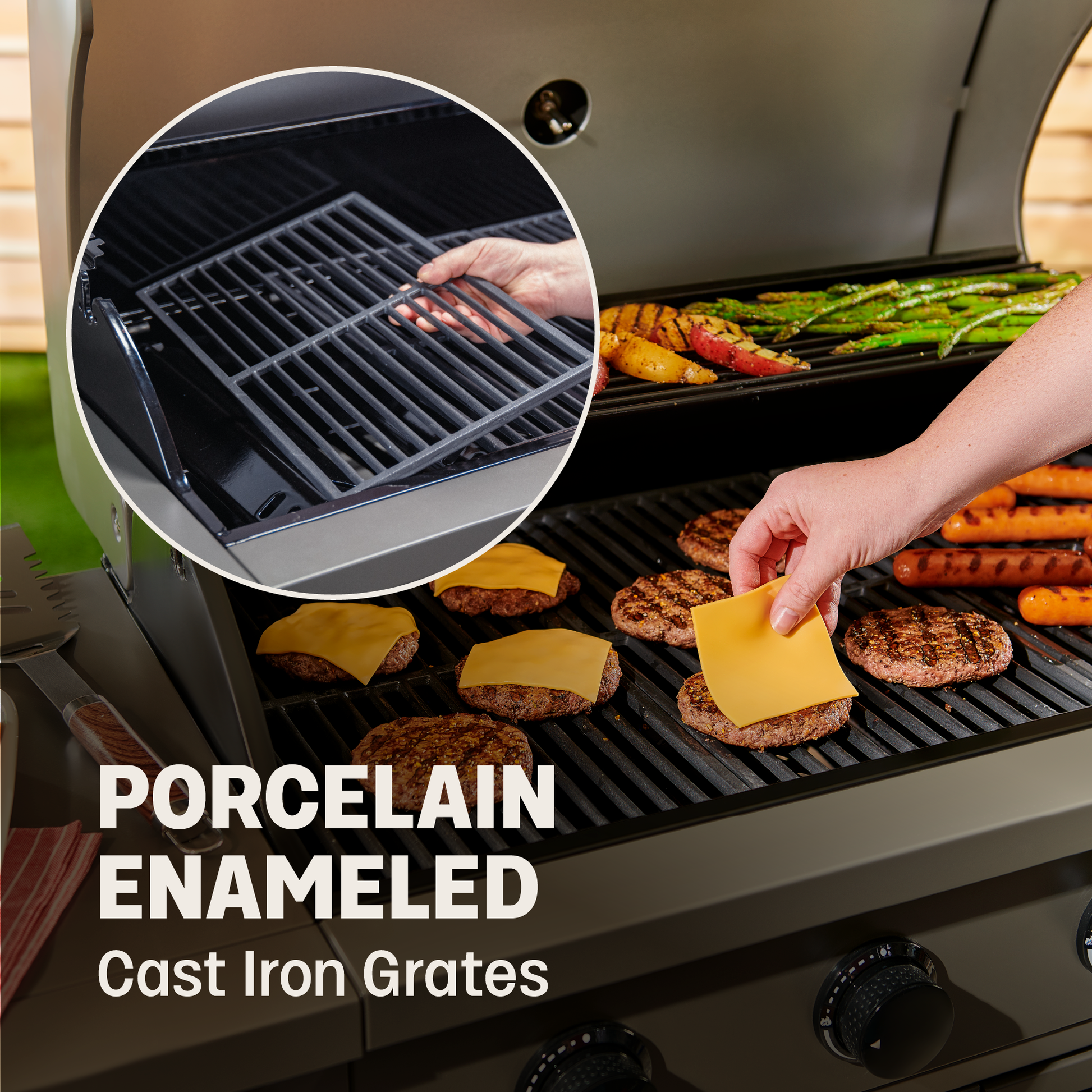 Clean Grates After Use: After each cook, brush the porcelain‑enameled cast iron grates and wipe with a cloth; apply a thin coating of cooking oil to help prevent rust and sticking.