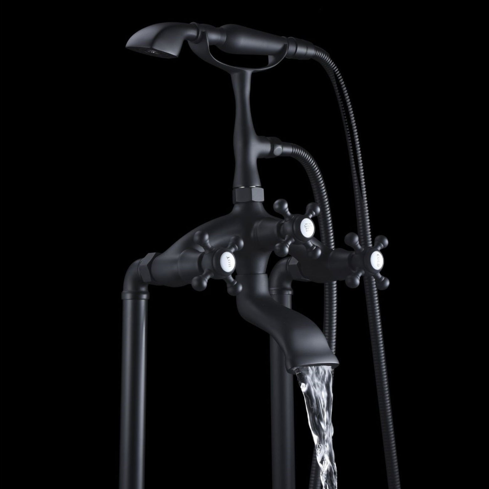 ANZZI has brought art to life in the form of an elegantly crafted full sized freestanding and claw foot tub floor mounted faucet. The ANZZI Tugela series features 3 handle control design, powerful tub filling spout and far reaching hand held sprayer. All this is suspended atop a floor mounted freestanding architecture in matte black which housing solid brass interior components. ANZZI freestanding faucets are crafted for looks and built for reliability.
