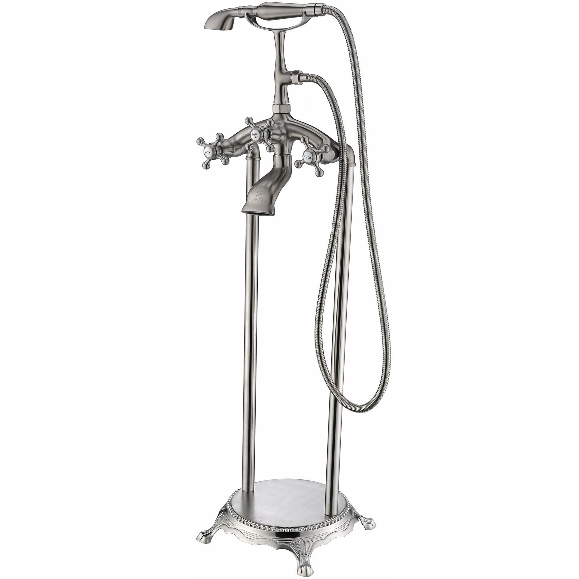 - Three (3) handle freestanding claw foot tub faucet in a stunning brushed nickel and a lustrous polished chrome finish