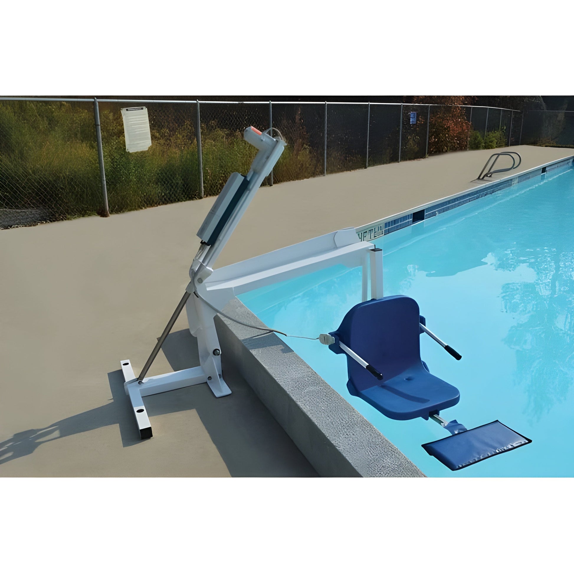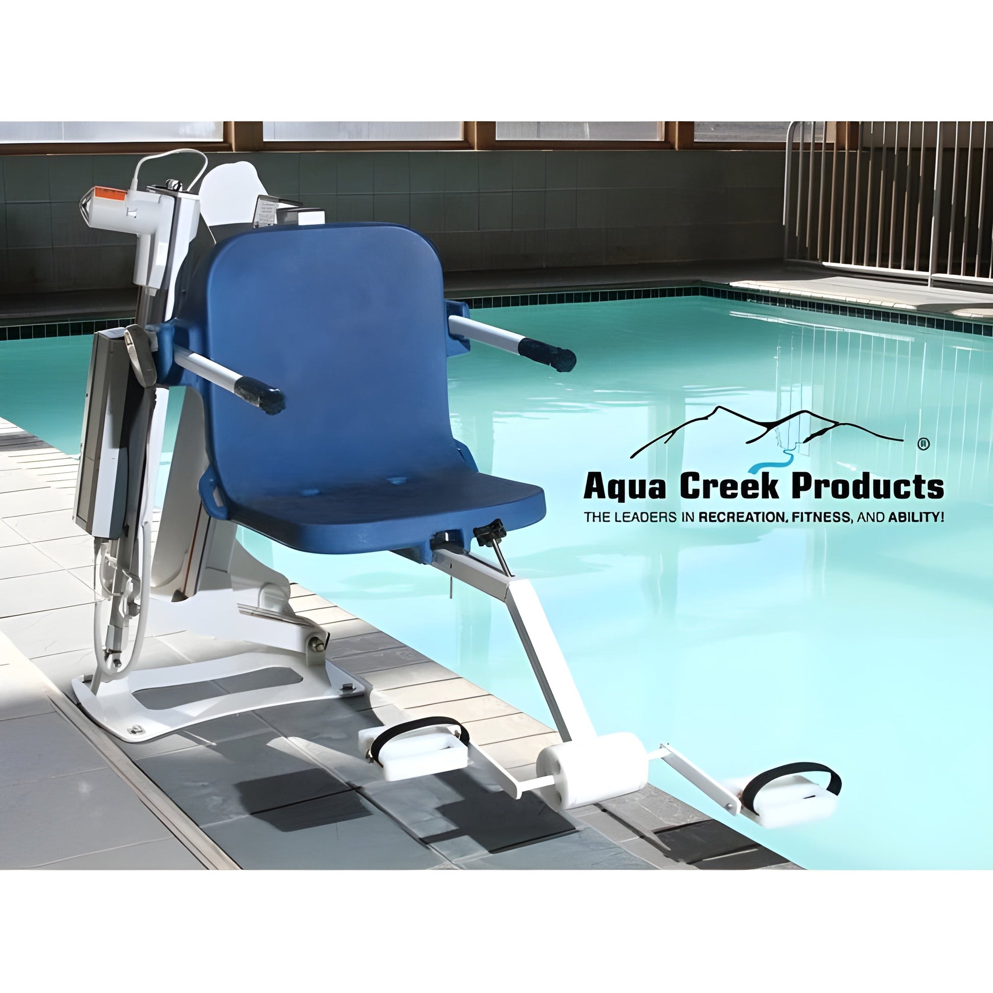 The Aqua Creek Ambassador Pool Lift, a part of the Pro Pool Series, builds upon the success of the Original Pro Pool Lift with enhanced features designed for accessibility and versatility. Engineered to provide accessibility for wide gutters and spa benches, the Ambassador Lift boasts an extended reach capability, making it ideal for raised perimeter pools and spas with partially raised walls.