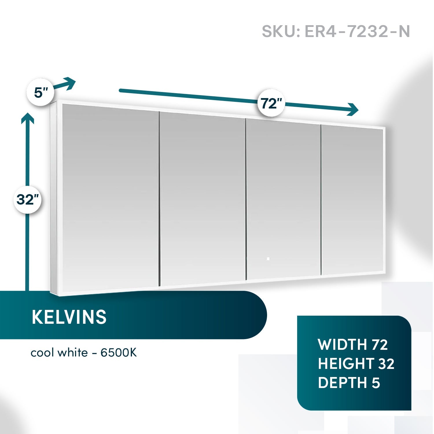 Edge Royale Tall Medicine Cabinet is designed for both surface mounting and recessed installation. It is available in 14 variations with sizes ranging from 15×70 inches to 72×32 inches wide. Edge Royale s design features are a brilliant reflection of the substantial modern elements that set Aquadom medicine cabinets apart from the ordinary. Key features combine Starphire Ultra-Clear adjustable shelves, interior lighting that is automatically activated by the light sensor, a magnifying mirror with adjustable LED lighting, and a flip-out design, offering 3X magnification, a one-touch on/off switch for simplified control, and a dimmer so that you can adjust the lighting to your preference by holding down the light button.
