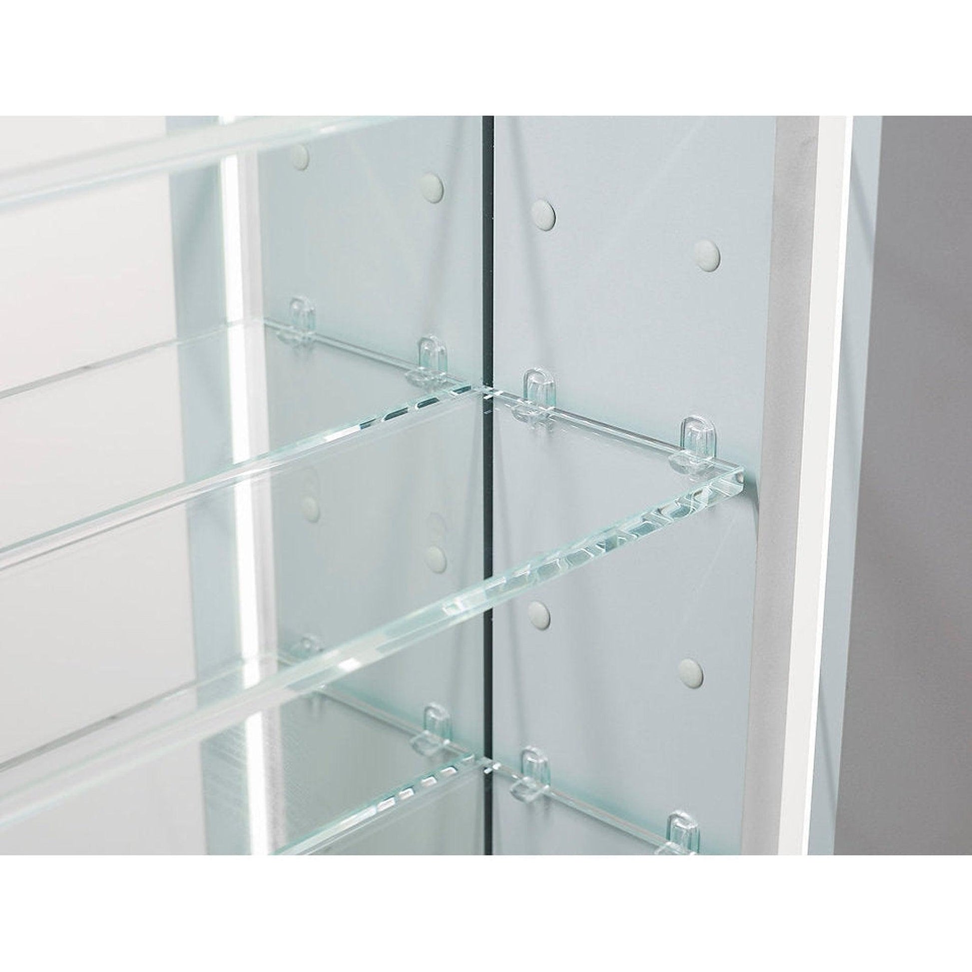 AQUADOM Royale Medicine Cabinets provides you with a beautiful and a secure storage space within arm's reach. Our product a 5 mm copper free silver mirror, mirrored doors on both sides (front & back) as well as a mirrored interior back wall, 6 adjustable 8-millimeter (5/16 inches) glass shelves keep your belongings safe and secure.