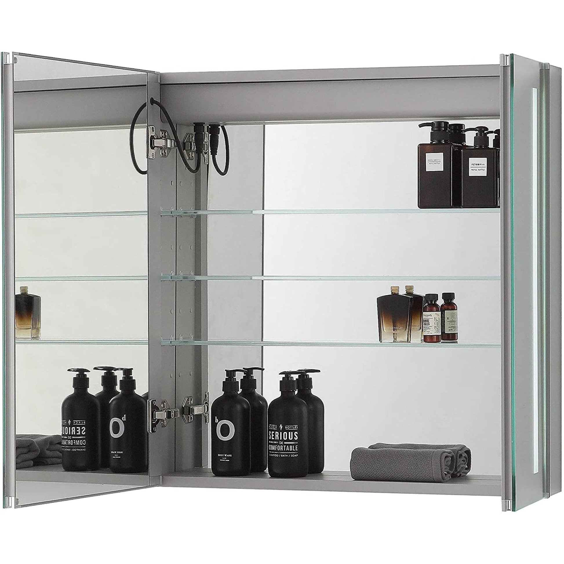 Equipped with cool temperature LED dimmable lights on the mirrored doors which are attached by 90-degree soft close hinges. The Royal Basic medicine cabinet can be recessed or surface mounted with the side mirrors included at no additional charge. This beautiful medicine cabinet is available in 3 sizes and is a great addition to any bathroom in your home or rental property.