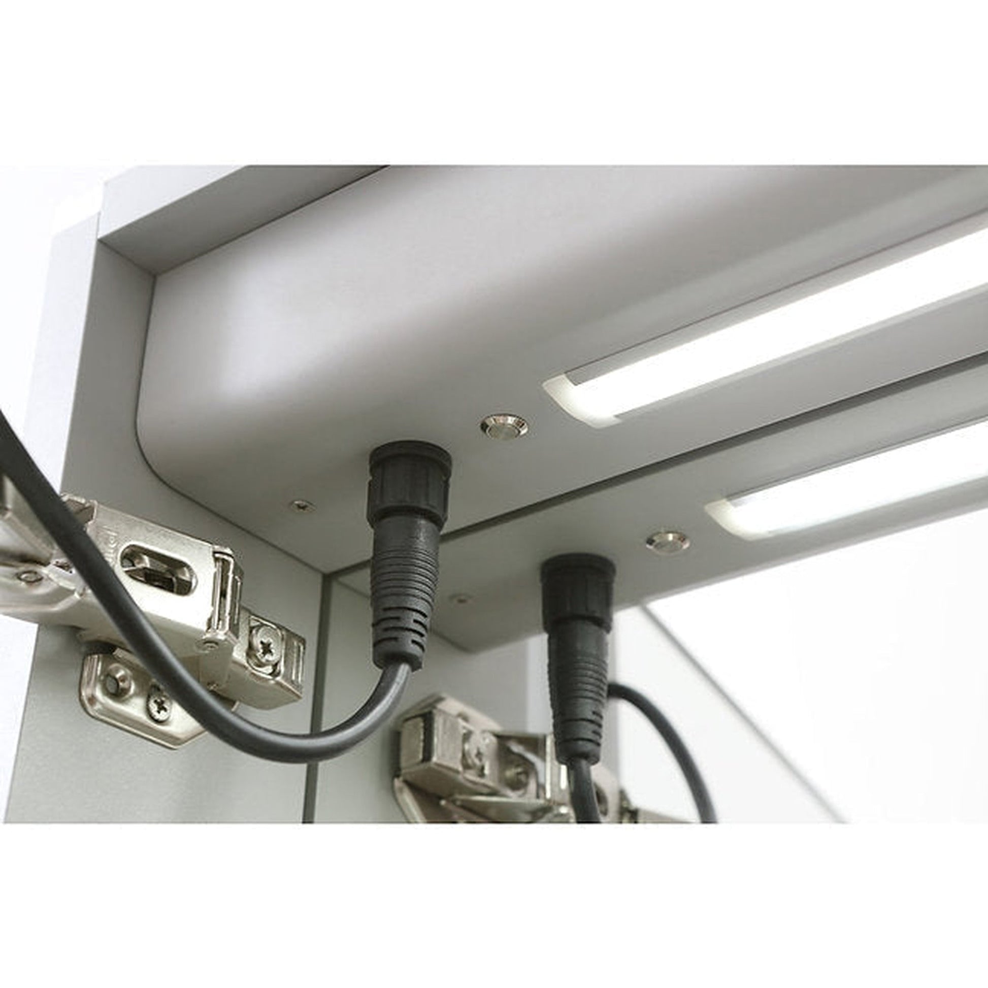 All Aquadom medicine cabinets can be recessed or surface mounted with the side mirrors included at no extra charge. The new SR model will feature 3D, Triple Color Temperature Lighting (cool light, warm light, and combination of cool and warm mixed). Each light has a built-in dimmer on it. As always, our LED digital clock comes standard in the Signature Royale.