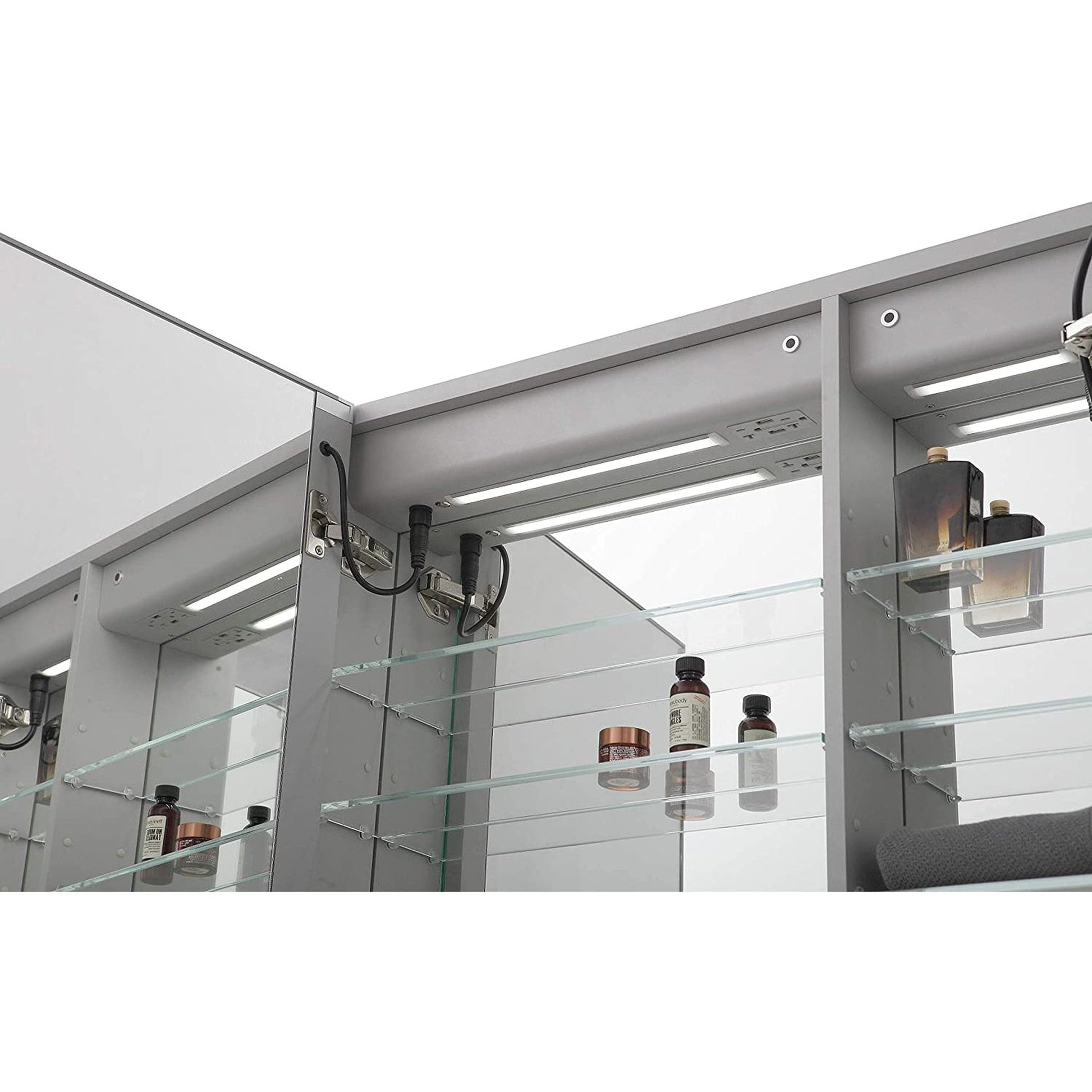 Aquadom Signature Royale Tri-View 40" x 30" Rectangular Medicine Cabinet With Lighting, Defogger, Integrated LED 3X Magnifying Mirror And Electrical Outlet with USB - SR-4030