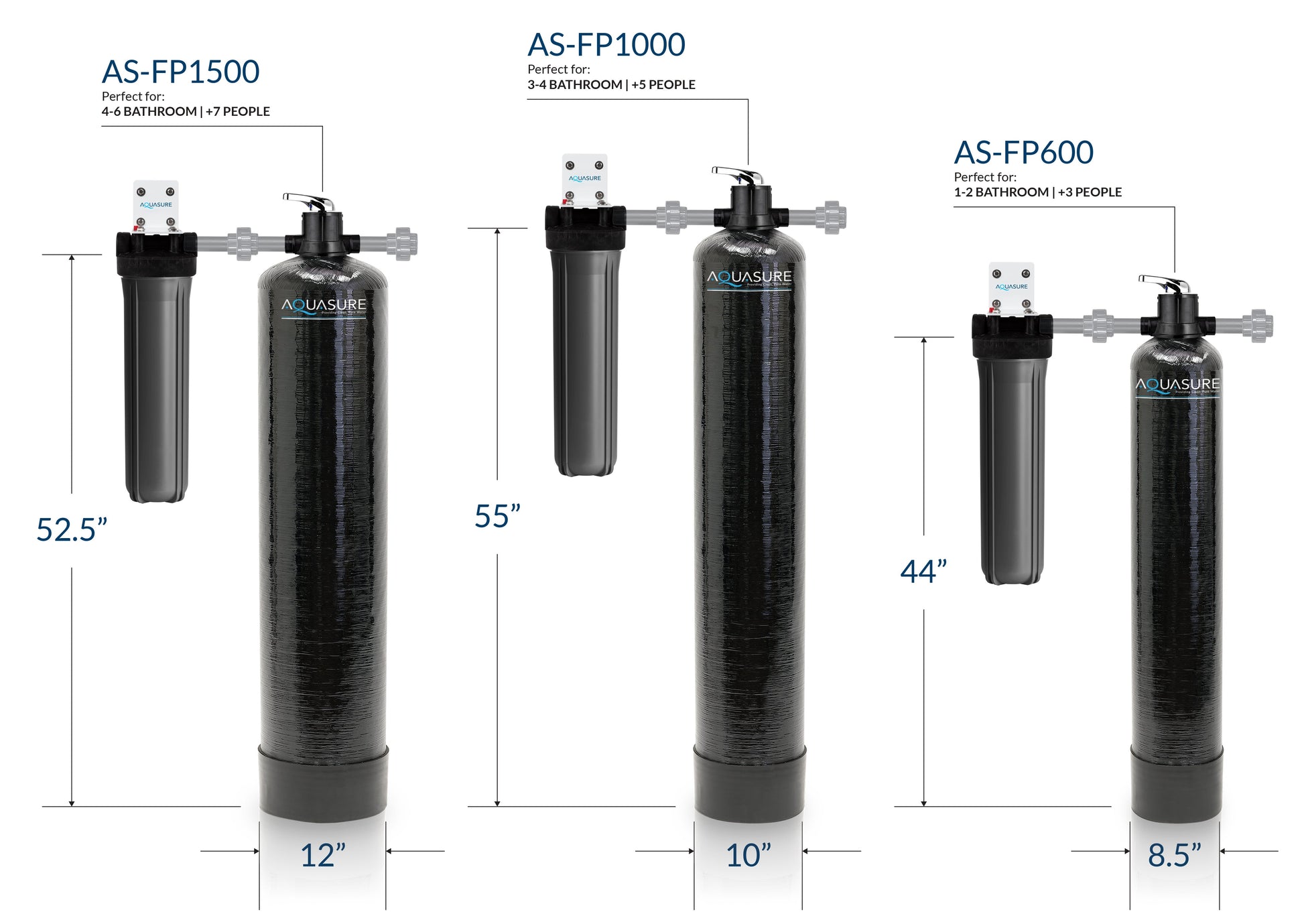 β’ Designed for 5-6 bathrooms homes, up to 8 people on city, municipal or well water.