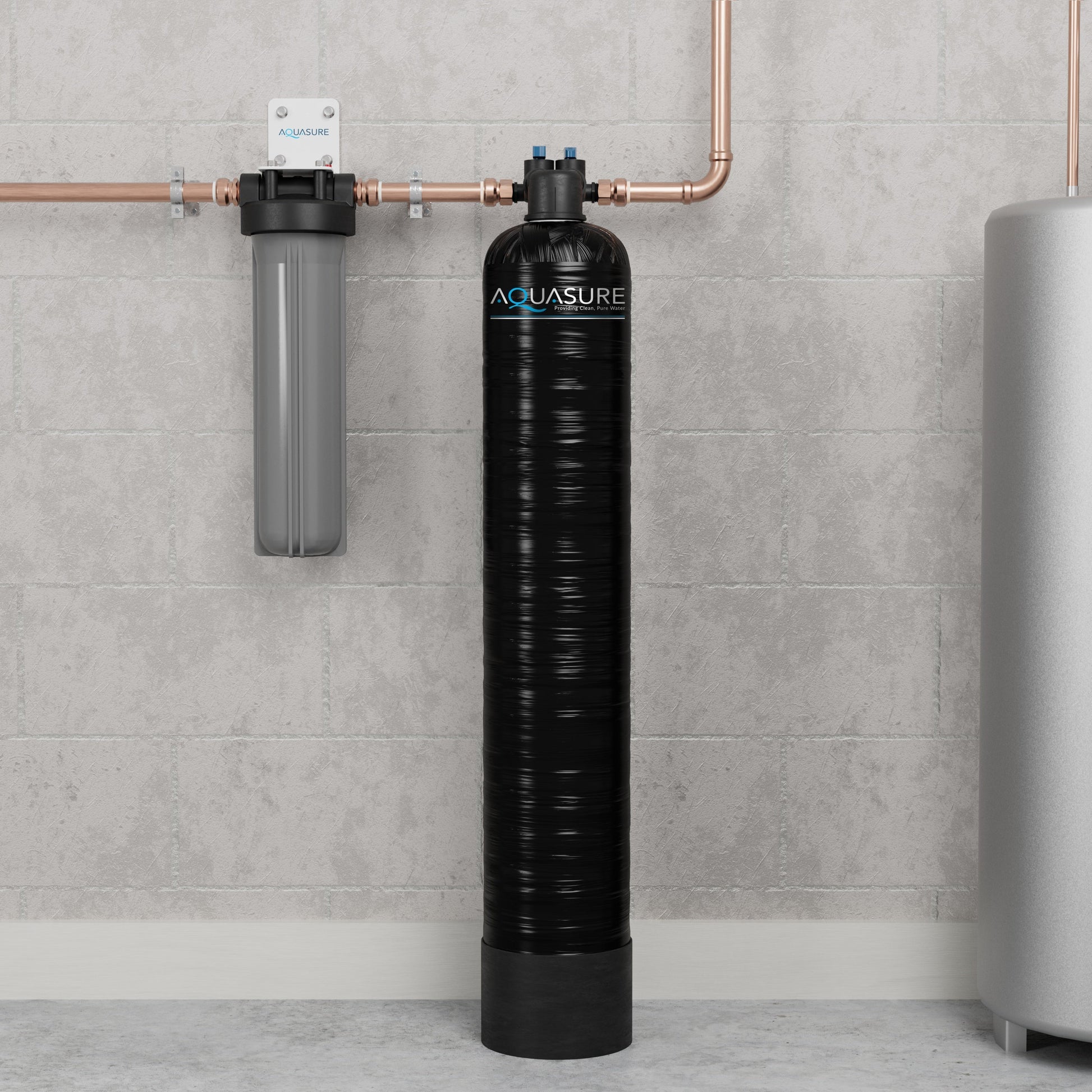 The Aquasure Serene Series Whole House Water Conditioning System is an alternative solution for improving your water quality without the hassle of electricity or salt. Designed for homes with 1 to 3 bathrooms, this system delivers salt-free water to your entire home while protecting your plumbing and appliances from harmful scale build-up. With its 5-stage filtration process, it removes 99% of contaminants. Experience scale-free plumbing, pristine water quality, and a maintenance-free lifestyle with Aquasure.