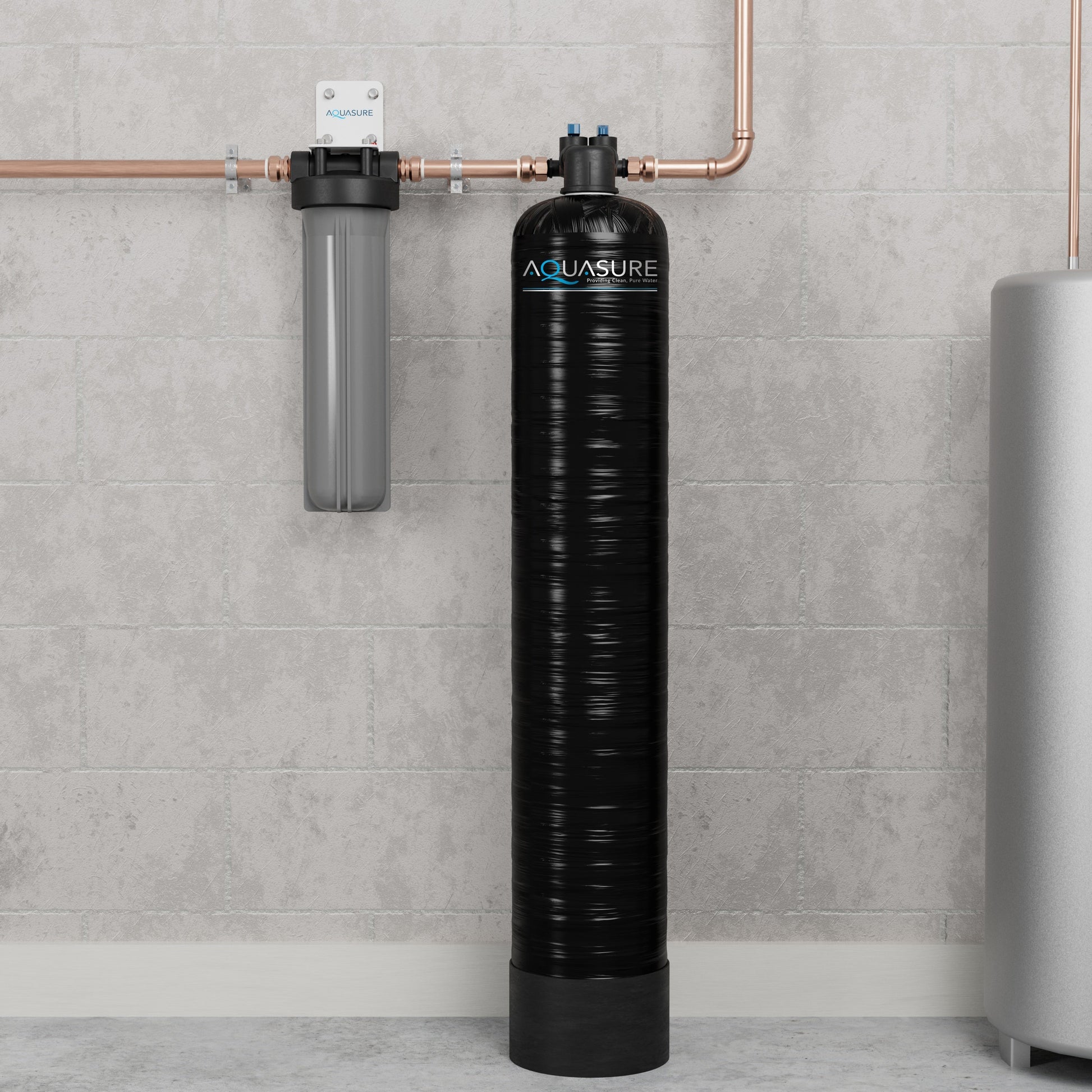 The Aquasure Serene Series Whole House Water Conditioning System is an alternative solution for improving your water quality without the hassle of electricity or salt. Designed for homes with 4-6+ bathrooms, this system delivers salt-free water to your entire home while protecting your plumbing and appliances from harmful scale build-up. With its 5-stage filtration process, it removes 99% of contaminants. Experience scale-free plumbing, pristine water quality, and a maintenance-free lifestyle with Aquasure.