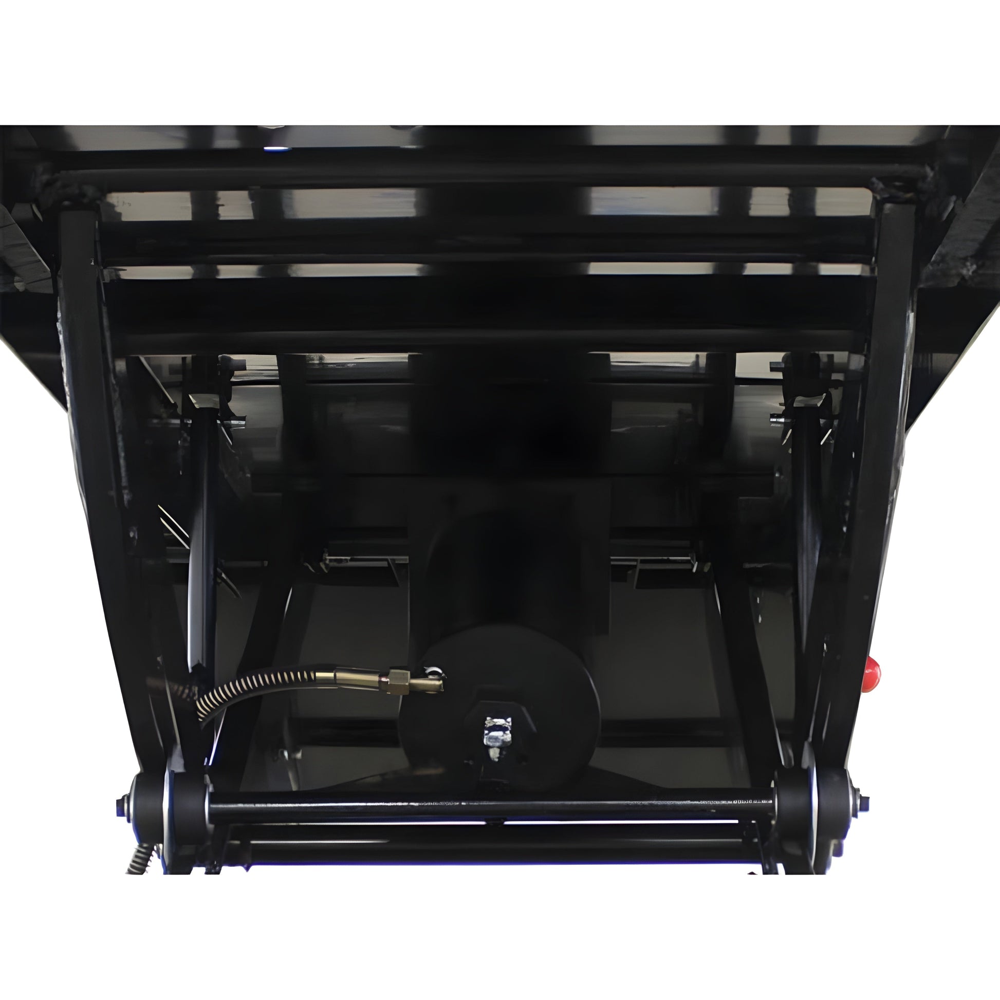A: It is a foot pedal-operated air-powered lift, ensuring smooth and controlled lifting.
