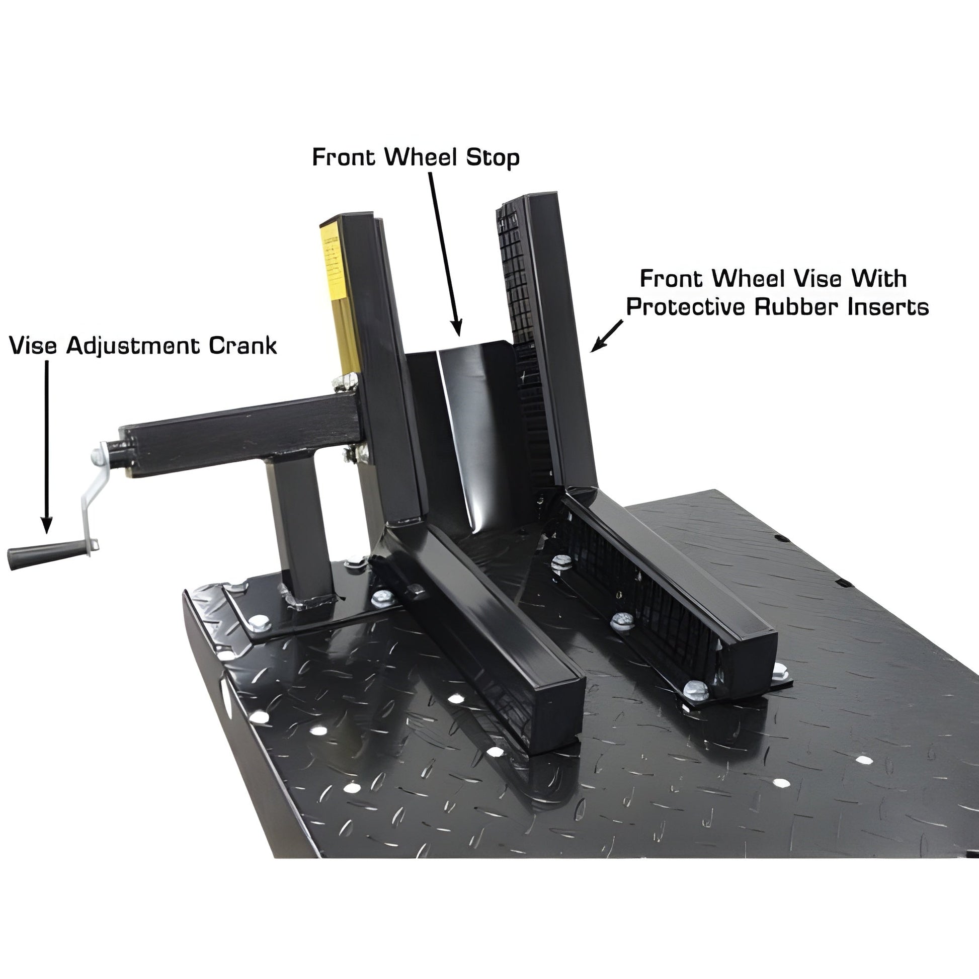 A: It has a 1,000 lb capacity, making it ideal for motorcycles, ATVs, and small vehicles.