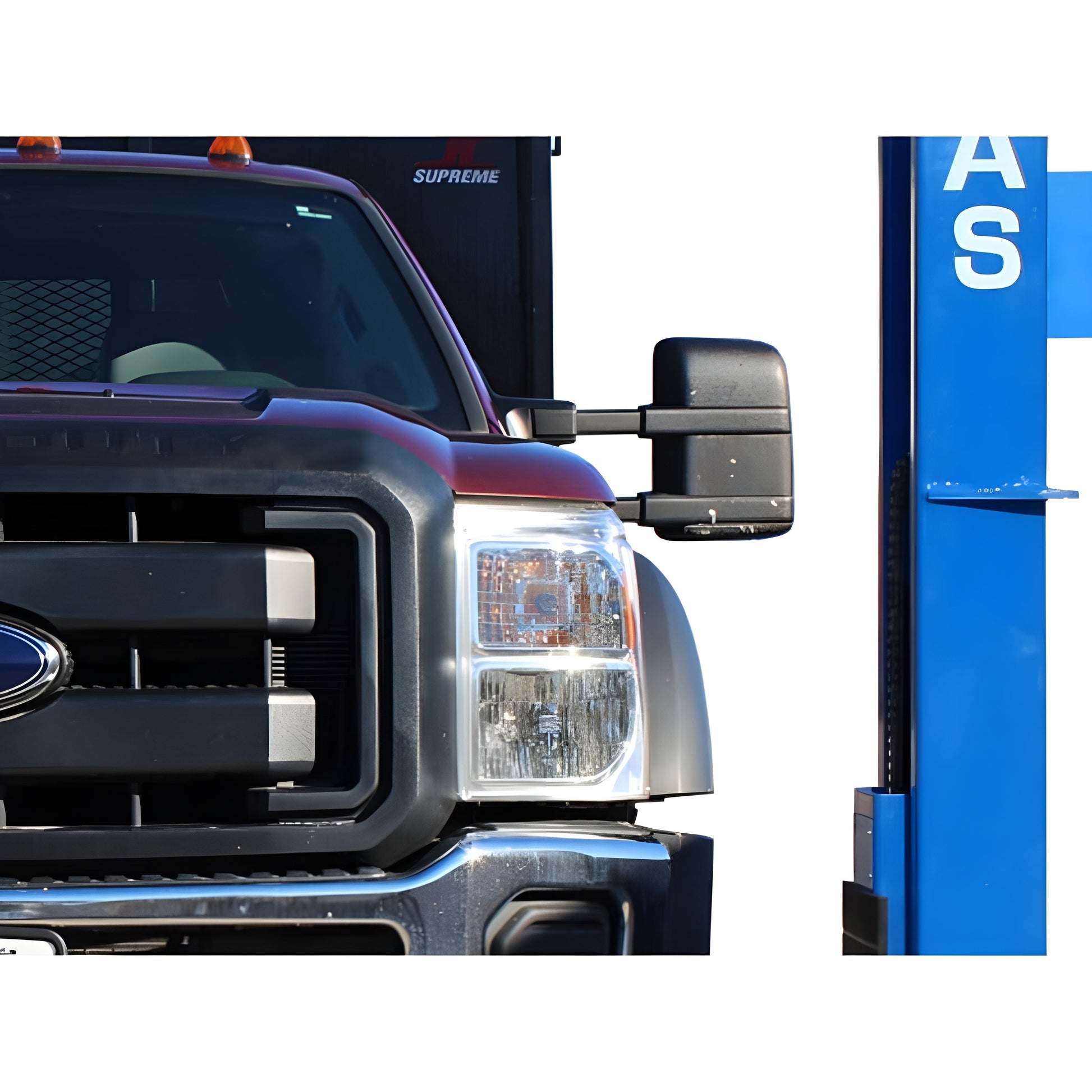 The Atlas BP12000X is a commercial grade heavy duty 12,000 LB. capacity 2 post base plate above ground lift. This above ground lift has over sized columns, symmetric three stage arms, and single point lock release. This lift is perfect for those commercial garages that want to lift heavier vehicles but have limited ceiling height. The Atlas BP12000X can be installed at two different width settings to accommodate wider trucks or trailers and to facilitate “driving between” the lift columns.