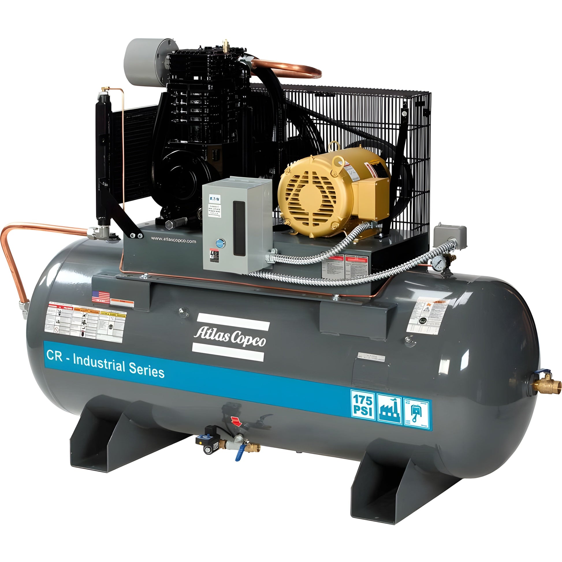 Introducing the Atlas Copco CR15-CRS2-120H 230/3 Air Compressor, the ultimate customizable compressor for contractors, professionals, and industry experts. This durable compressor is constructed with heavy-duty cast iron and precision engineering, ensuring a consistent air pressure of up to 175 psig. Rest assured, we have your back with our warranty packages, including a fantastic 5-year extended option. Customize your compressor with our configurable options and find the perfect fit for all your compressed air requirements. Trust the CR Atlas Copco Cast Iron Piston Compressor for exceptional performance and reliability.