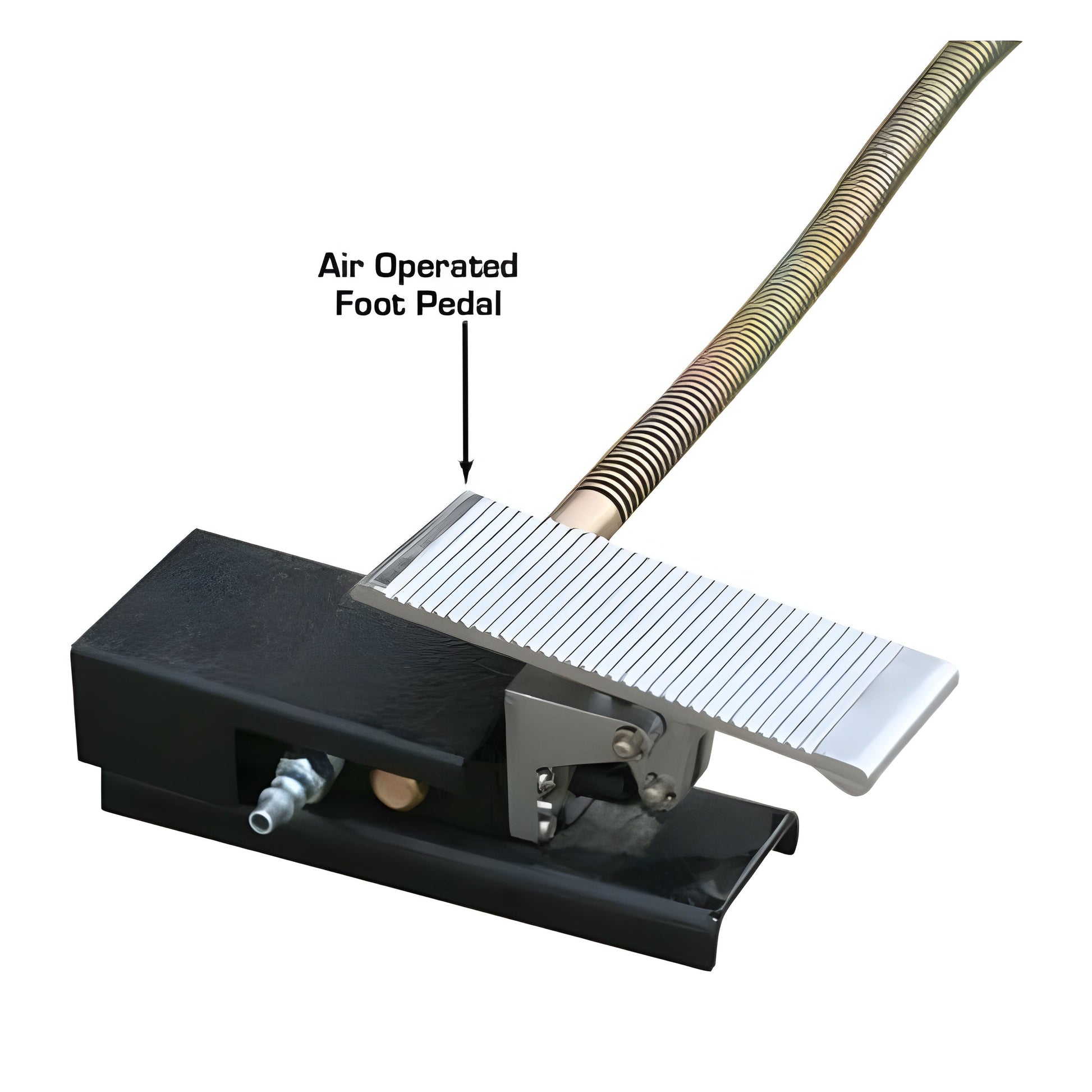 The Atlas Cyclelift has one of the industry’s longest (standard) platforms to accommodate extra long motorcycles. The motorcycle lift has a heavy gauge (diamond plated) platform length of 93 inches and an additional 20 inch removable approach ramp.The Atlas Cyclelift is air operated and requires between 90-100 PSI to operate. The Cyclelift is the perfect addition to any service department of professional motorcycle dealers or is a great motorcycle lift for the person who wants to work on his personal bike in their own garage.This is a complete motorcycle lift that includes an adjustable front (padded) wheel vise and a heavy duty air operated foot valve for easy raising and lowering. The stabilizing bar is included at no extra charge. This bar provides greater stability for the raised platform by increasing the “footprint” of the lift. Many companies do not include this very important stabilizing bar in their “lift package”.The Atlas Cyclelift motorcycle lift comes standard with a 19 1/2″ removable rear section. This 19 1/2″ section can be easily removed so that a rear tire can be “dropped straight down” from the rear axle. Since the entire platform width is removed, any sized rim can be lowered from the axle.For those customers looking for more width to pick up ATV’s, UTV’s, Golf Carts, and other wider vehicles the Atlas Cyclelift can be equipped with the Atlas® Cyclelift Side Extension Kit to increase the width up to 4 feet.