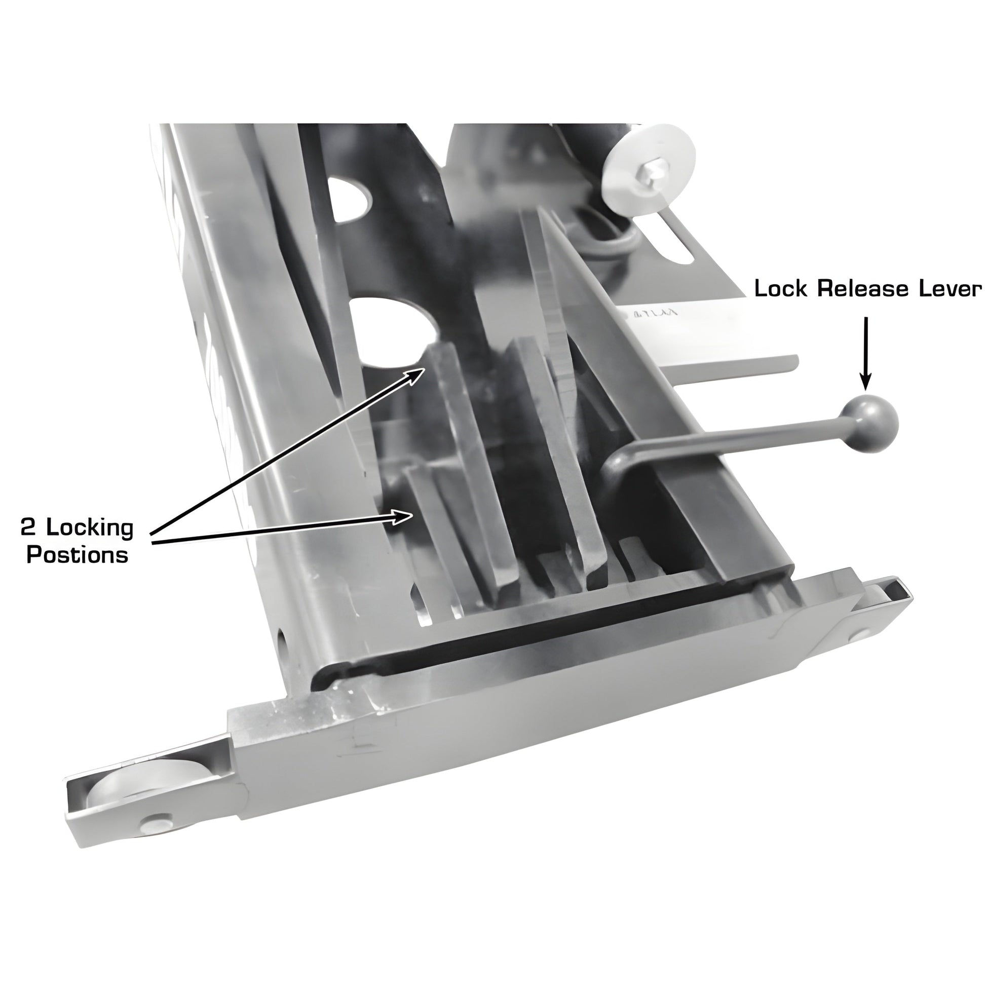 A: The PVL14OF-EXT features an extended length and open front design, making it ideal for alignment and servicing vehicles with a longer wheelbase or larger vehicles like trucks and vans. The open front provides clear access to the vehicle for better alignment and repair work.