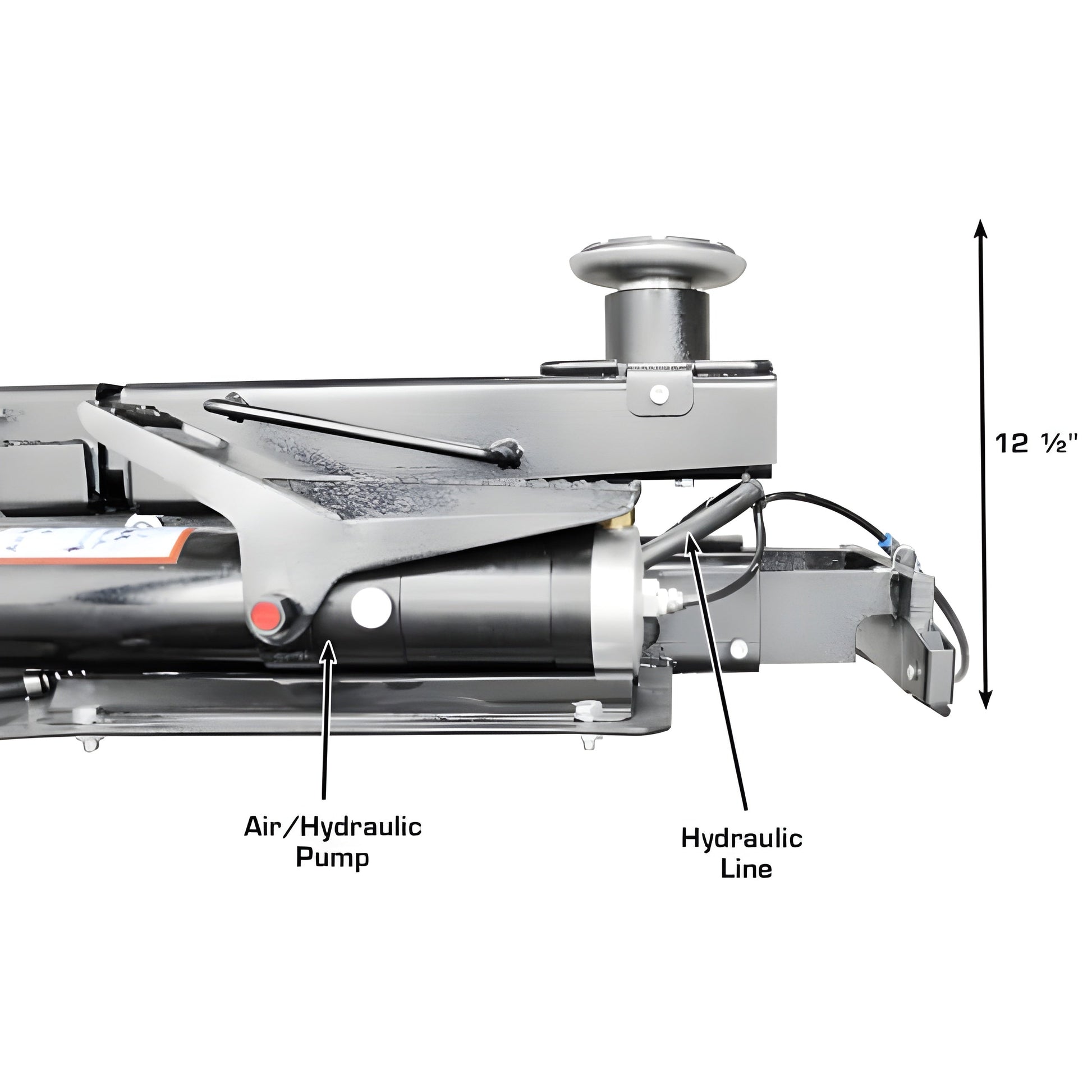The Atlas Platinum RJ7000 air/hydraulic rolling jack has telescoping arms that can be extended over the runways of a four post lift. The lift pads at the end of these arms can be positioned under the lifting points that are located over the runways of that four post lift. This rolling jack is equipped with expandable rail supports which adjust to fit between the runways of many different four post above ground lifts. These supports have a unique roller system that allows the rolling hydraulic jack to glide easily under the entire length of the vehicle.The Atlas Platinum RJ7000 is an ALIAccessory recommended for the Atlas Platinum line of ALI 4-Post lifts.IMPORTANT: The Atlas AP-RJ7000 is designed and engineered to operate on “delivered” air pressure of between 70-115 PSI. If you exceed 115 PSI, you may damage your jack.