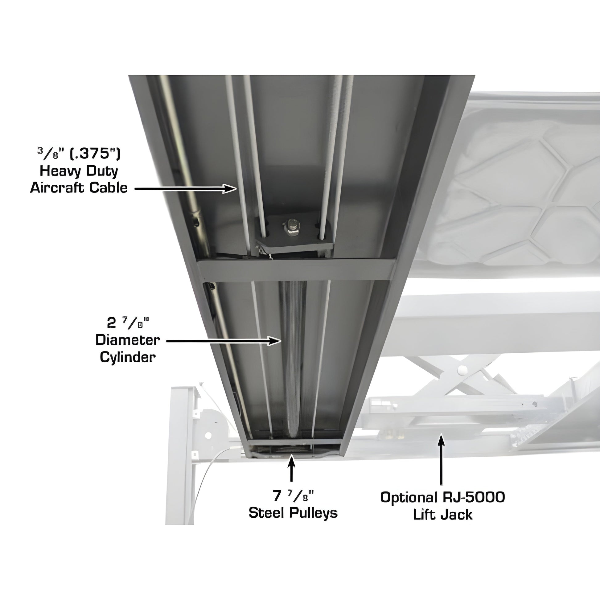 A: It offers 8,000 lbs. lifting capacity, extra-long runways for larger vehicles, and versatile sliding jacks for tire, brake, and suspension work.