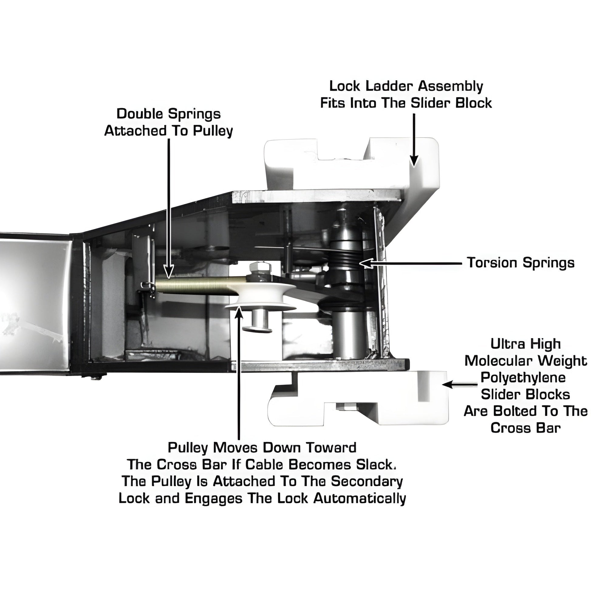 The Garage PRO8000EXT-L features the extra lifting height of the PRO8000EXT but is also 20 inches longer and 3 inches wider. Or to compare to the original, the Garage PRO8000EXT-L is 20 inches longer, 3 inches wider, and 14 inches taller than the standard Atlas Garage PRO8000! The extra runway length will accommodate almost all of the longer wheelbase pickup trucks, except duallys. This is because the dual rear wheels are TOO WIDE to fit between the column lock assemblies. Check out the Atlas Garage PRO9000 if you need a portable lift for your dually!This combo package also includes two of the popular Atlas RJ35 sliding bridge jacks. The jacks are perfect for raising a vehicles wheels off the lifts runways in order to service tires and brakes.