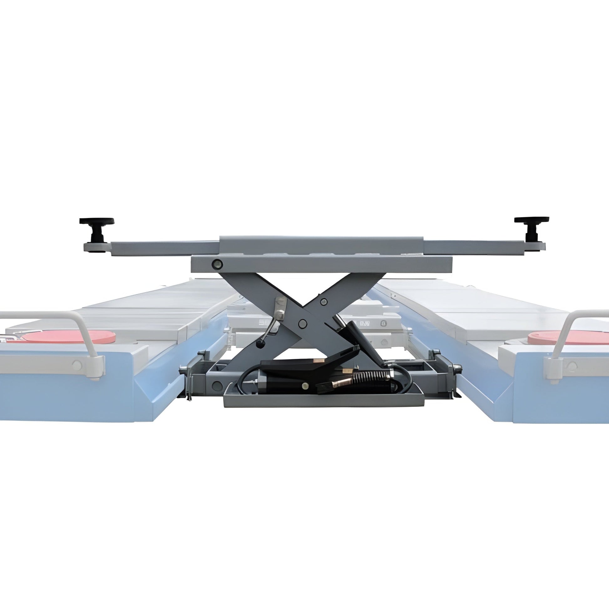 A: The Atlas RJ-6 is a rolling bridge jack designed for use with 4-post lifts, allowing for wheel-free lifting to perform tire, brake, and suspension work on vehicles up to 6,000 lbs.