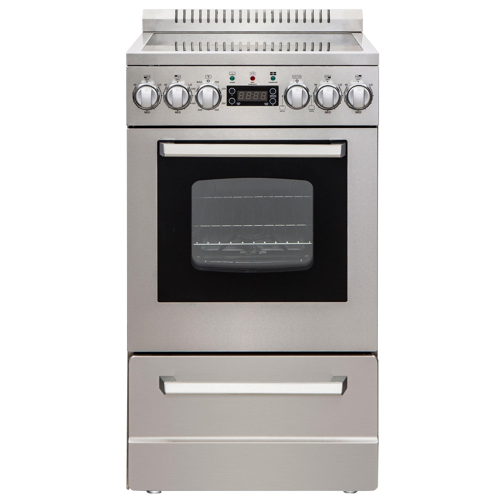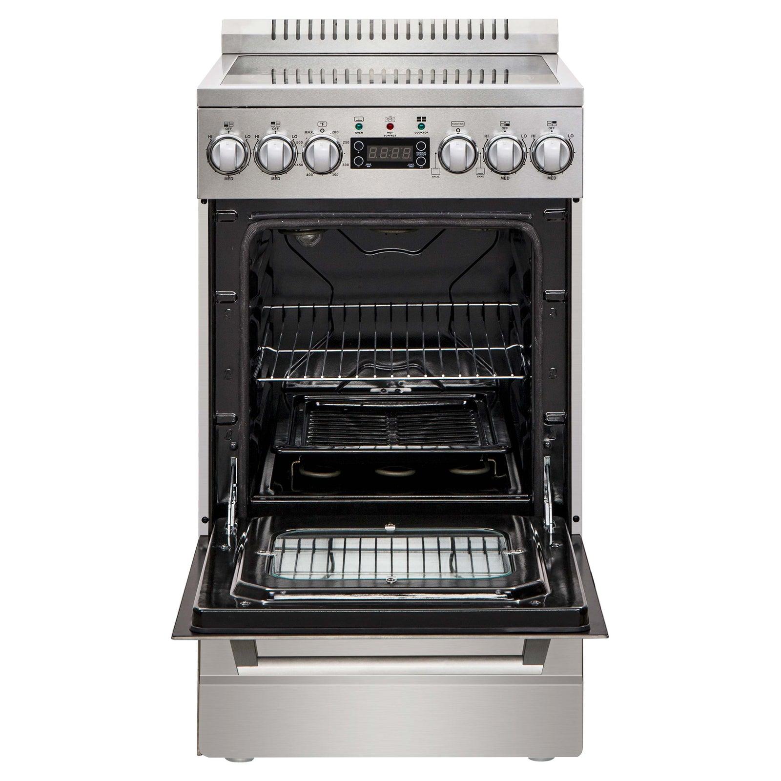 A: 20-inch wide freestanding electric range with a 2.0 cu ft oven.