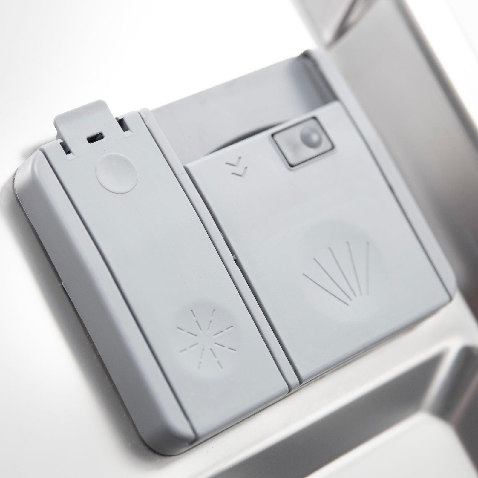 Convenient features β LED control panel, delayed-start option, nylon-coated racks, rinse-aid dispenser, and three-stage filtering system.