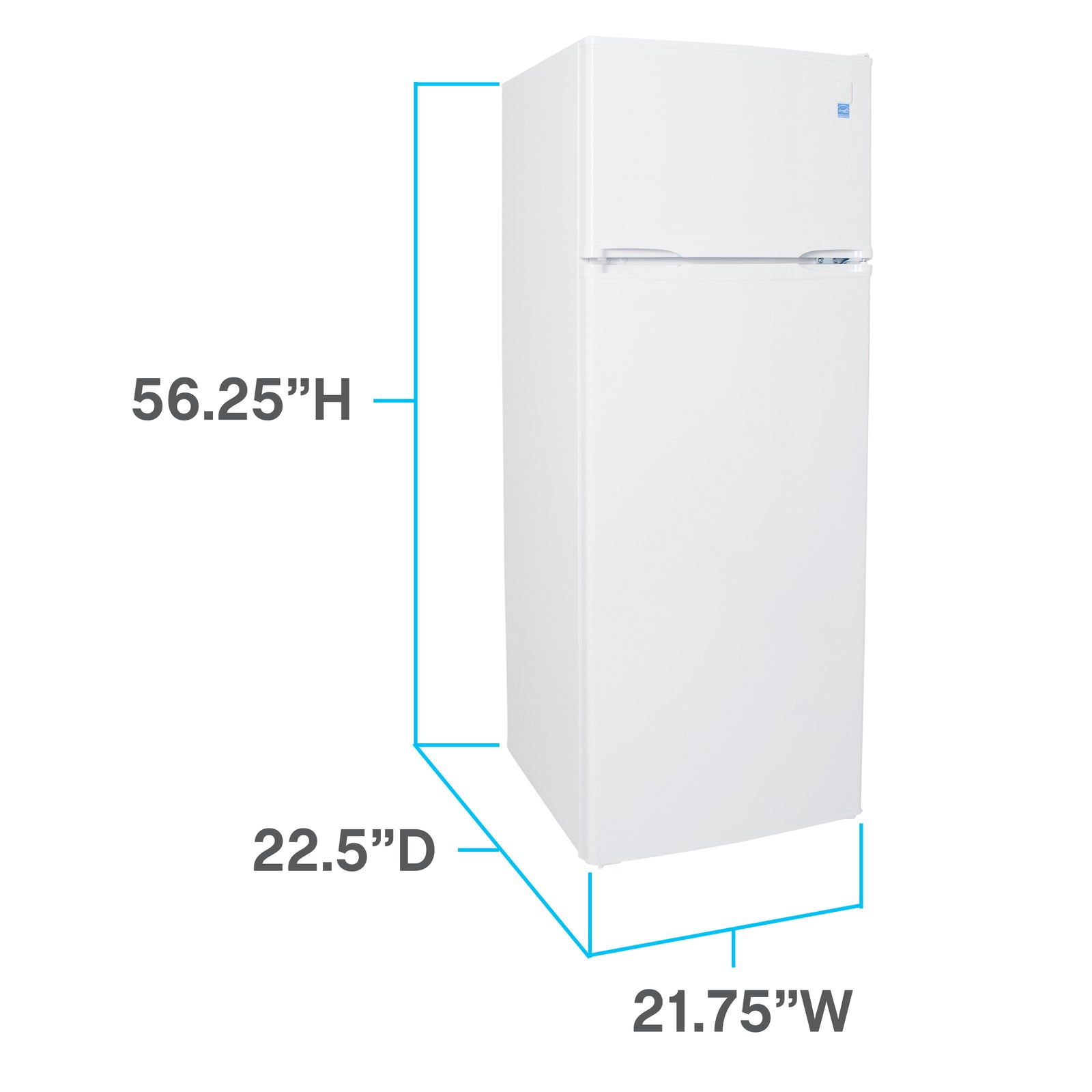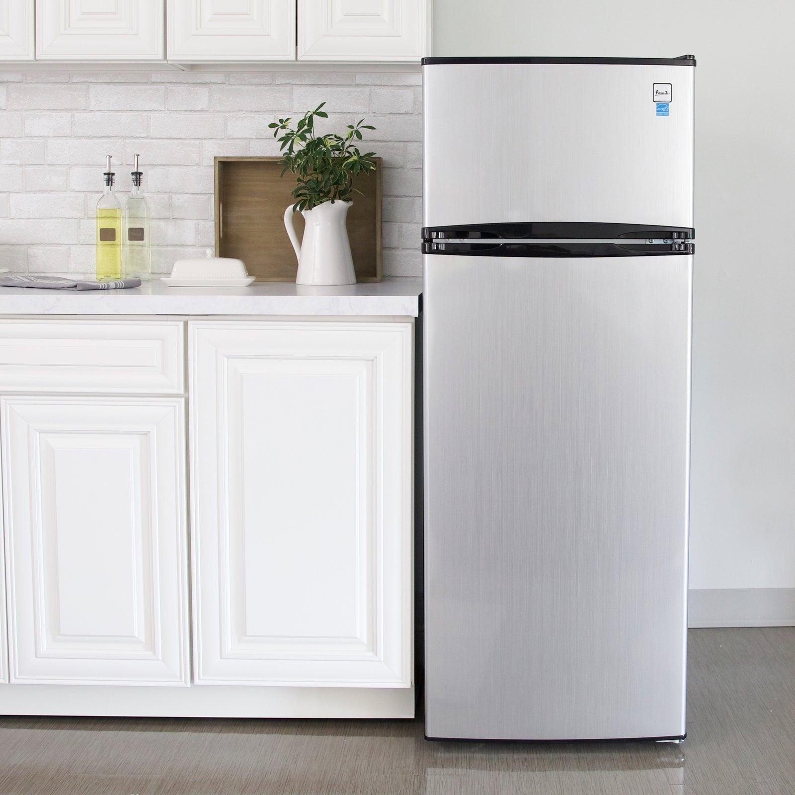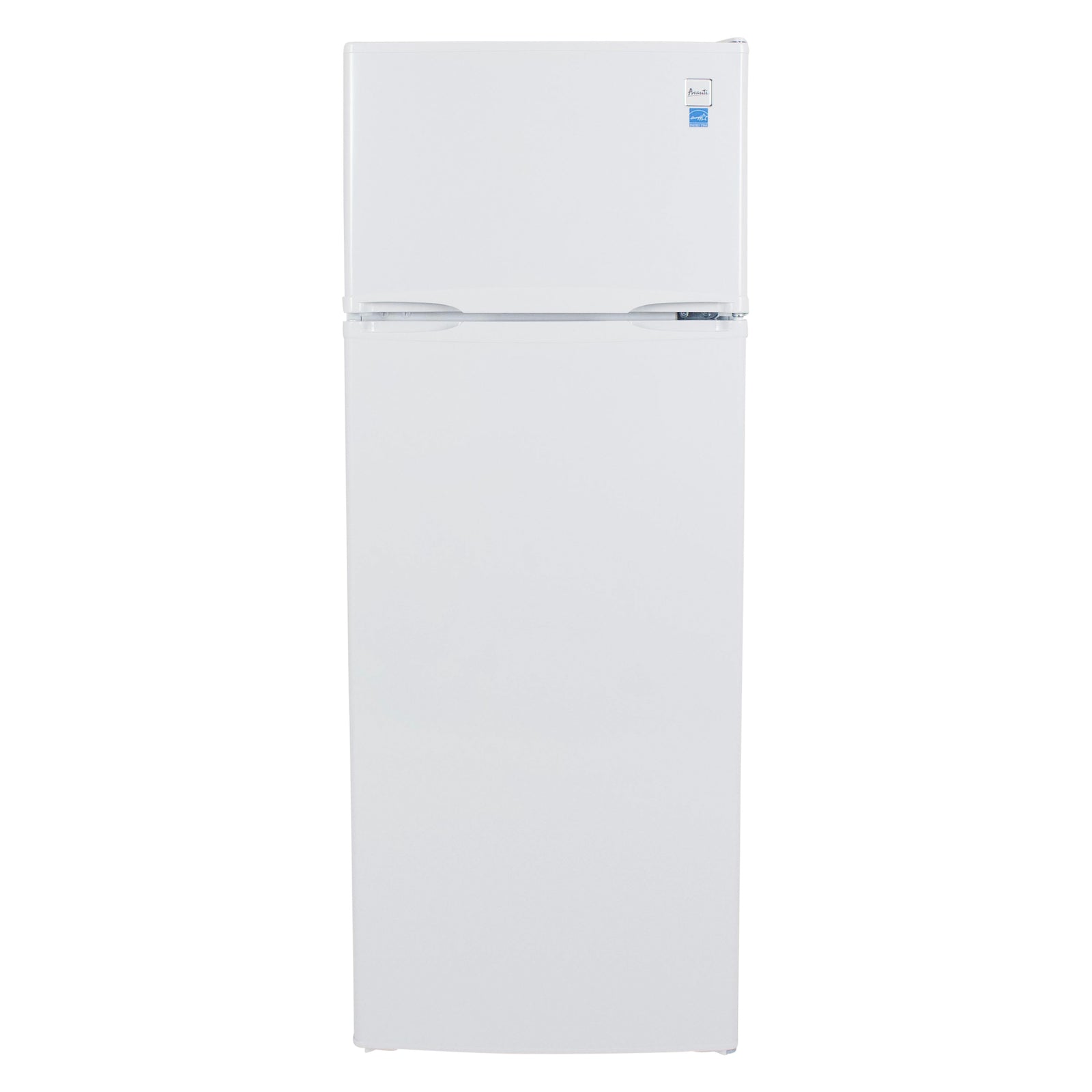 Store your food and beverages in the compact, 7.3 cubic feet, apartment refrigerator with freezer from Avanti. Ideal for anywhere you need a small refrigerator, it s the perfect space-saving fridge for a studio apartment, game room, tiny home, rental room, condo or vacation home. This apartment-sized fridge features full-width door bins that hold 2-liter bottles, adjustable and removable shelves, and a see-through crisper for storing your fruits and vegetables. The top-mounted freezer includes a wire shelf to keep your frozen foods organized. Select the right settings for your items with the adjustable temperature control. Covered by the Avanti One-Year Limited Warranty.